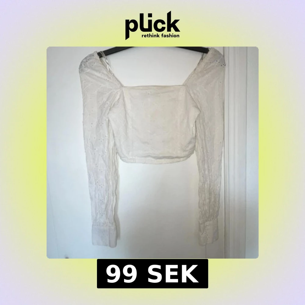 Säljer en söt vit blus från Bik Bok med broderade detaljer. Blusen har långa ärmar och en offshoulder-design som ger en romantisk look. Perfekt för vårens och sommarens tillfällen.