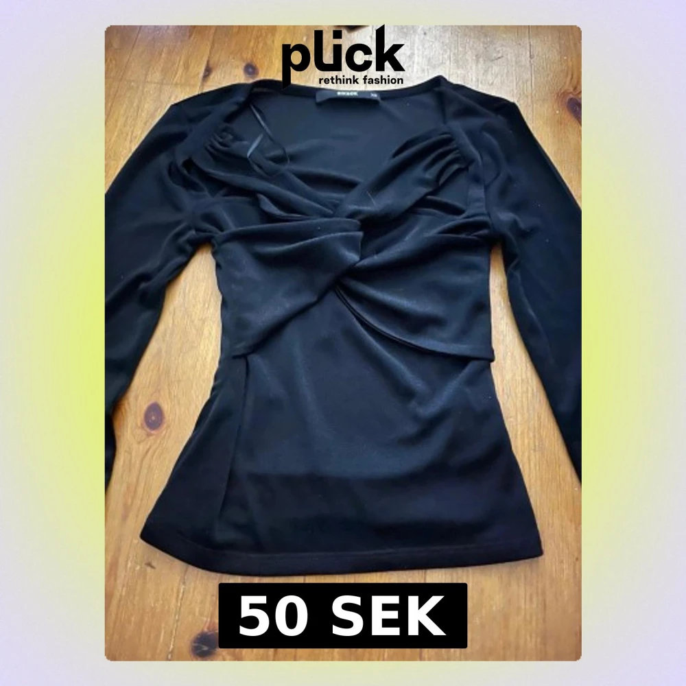 Säljer en svart omlottopp från BikBok i storlek XS. Toppen har långa ärmar och en snygg twistad omlottdetalj frampå. perfekt till många olika outfits. Köpt på vinted men har själv aldrig använt då den var förliten. Hör gärna av dig vid fler frågor ❤️ (kan ej visa hur den sitter på, då den som sagt är för liten.)