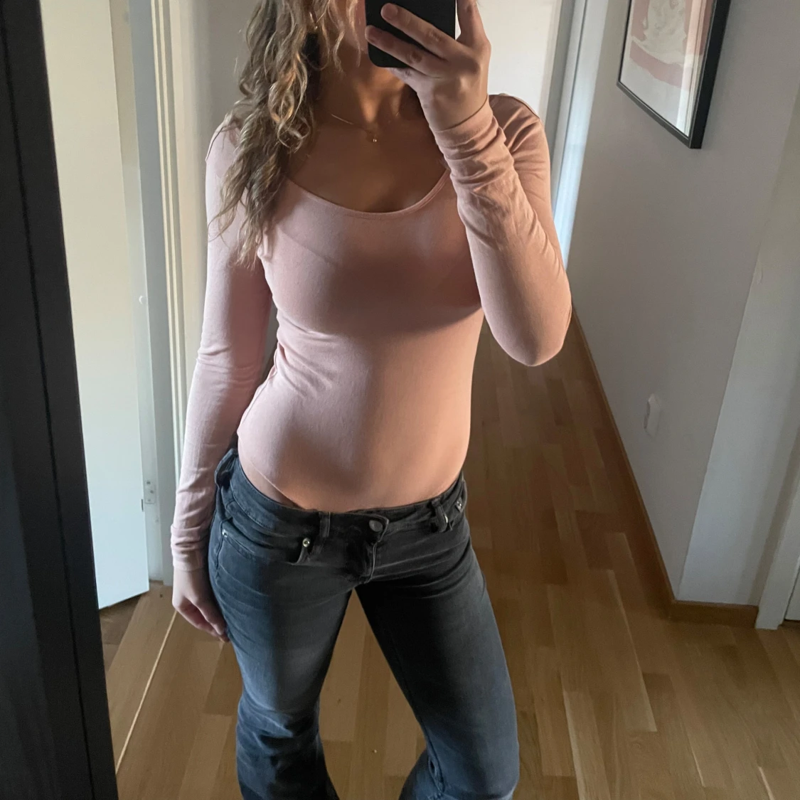 Säljer en stilren rosa body med tight passform. Perfekt för både vardag och festliga tillfällen. Toppen har en rund halsringning och är tillverkad i ett mjukt och bekvämt material.