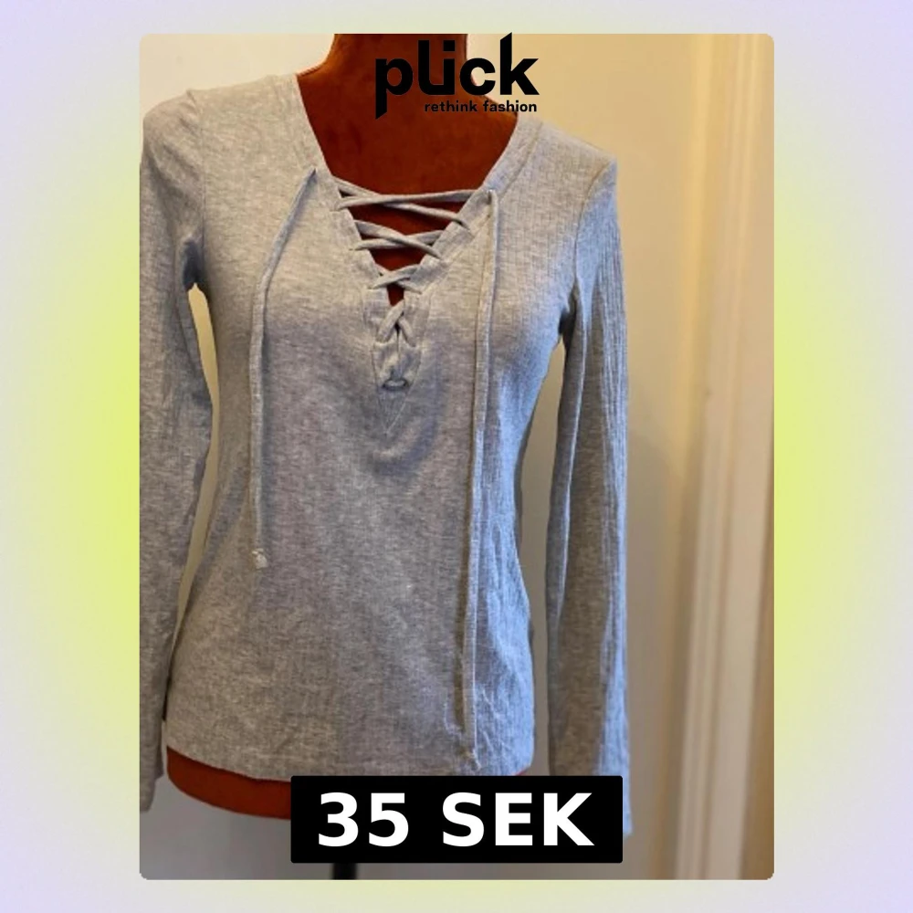 Ljusgrå långärmad topp med snörning XS