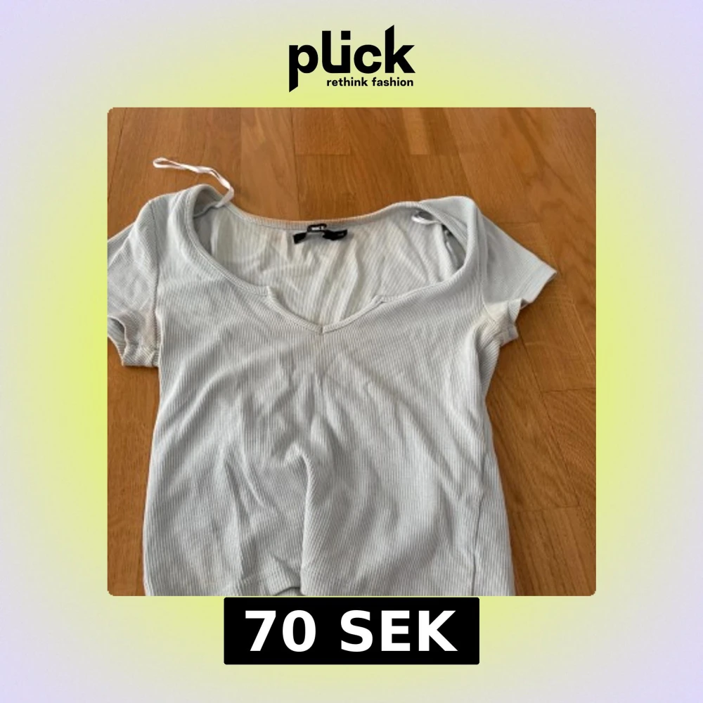 Säljer en ljusblå ribbad topp från Bik Bok i storlek XS. Toppen har korta ärmar, v-ringning och är tillverkad i ett mjukt, stretchigt material. Perfekt för en enkel och clean look.