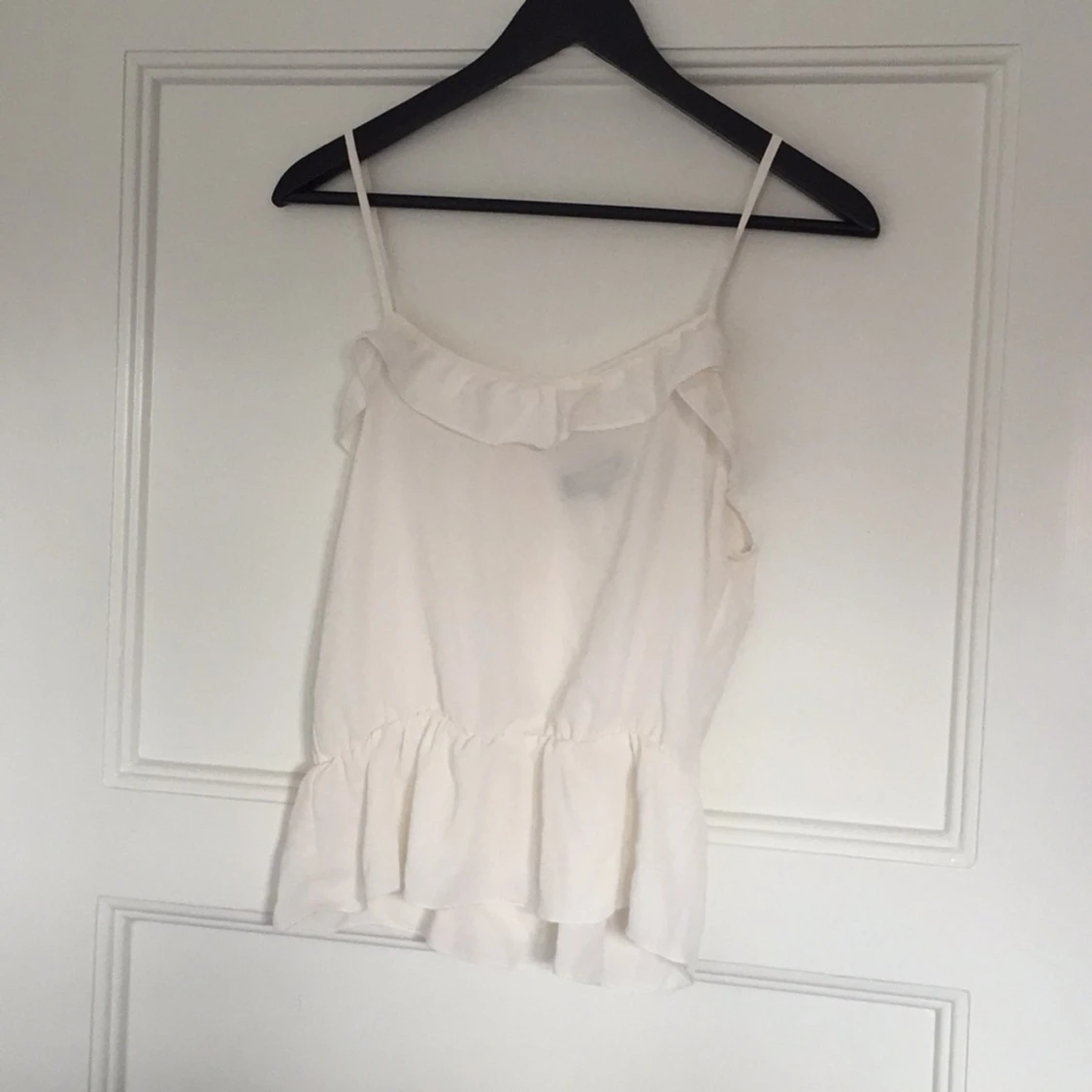 Ett benvitt linne från BikBok med volang nedtill och upptill. Fin ögla i ryggen.