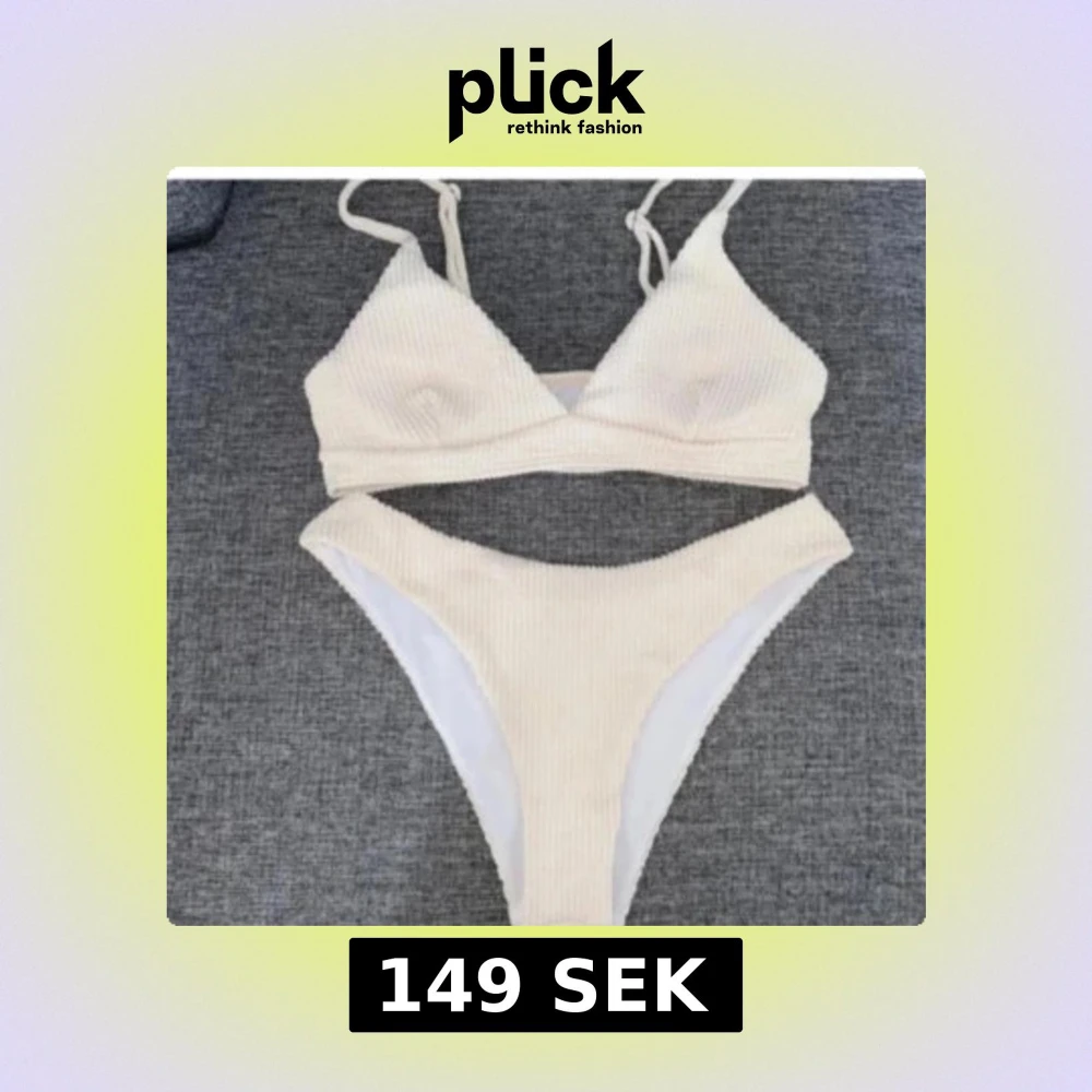 Vit bikini i smock, använd få gånger o såklart tvättad, stl S på under och överdel, iläggen går att ta ut, den är inte genomskinlig