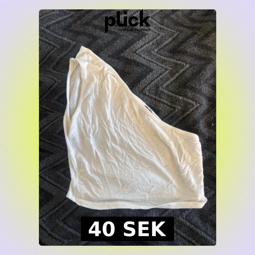 Säljer en vit oneshoulder topp i mjukt och stretchigt material. Toppen är ärmlös och har en asymmetrisk skärning som ger en trendig look. Perfekt att styla med höga jeans eller kjol för en cool outfit.