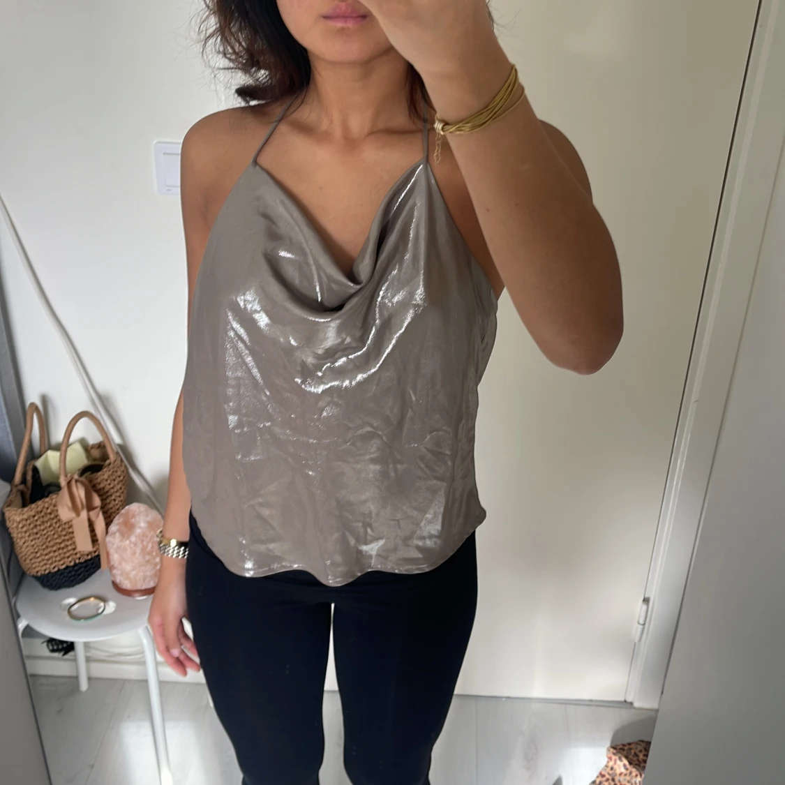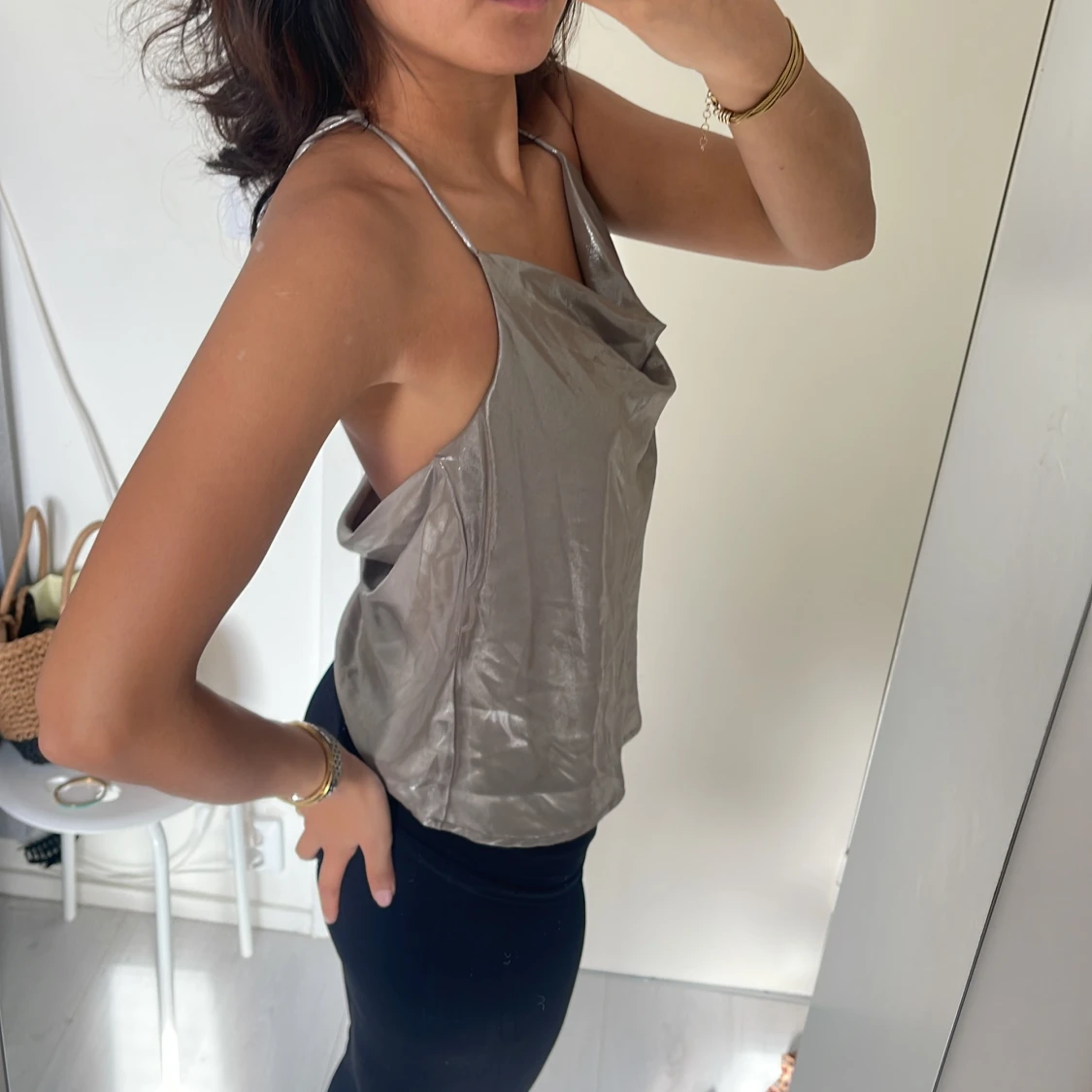 Perfekt till festliga ärenden!! Toppen är silvrig/metallic ”färgad” med öppen rygg. Aldrig använt. Det är dubbel material vid brösten!! ☺️