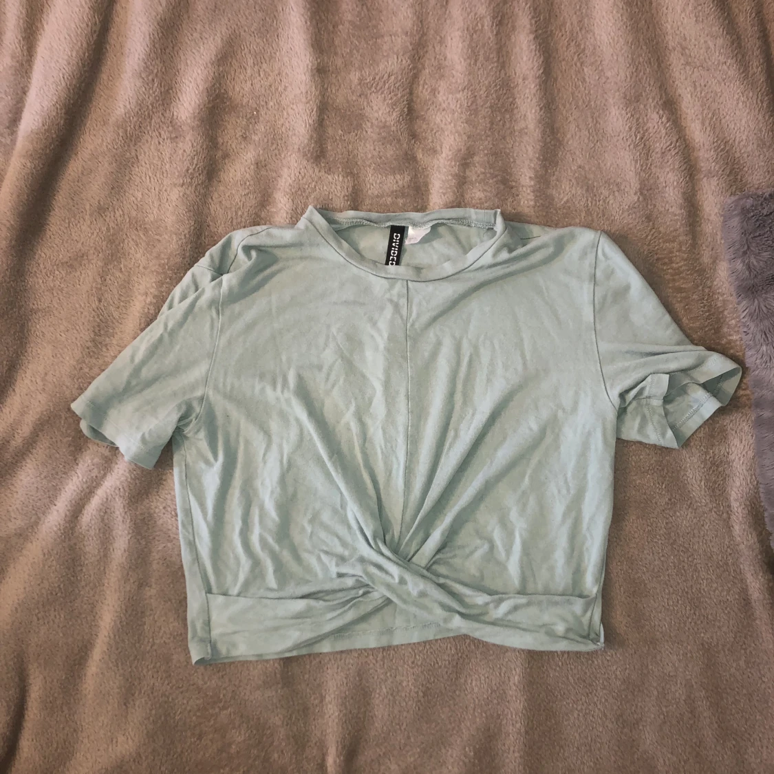 En turkos topp/tshirt med knytning vid magen, skulle säga att det är en magtröja. Vid frågor skriv privat 💕
