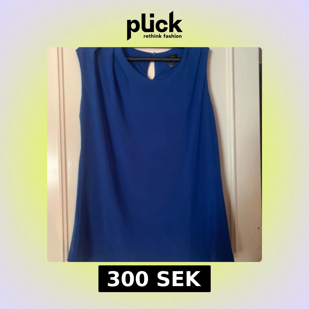 Snygg blå ärmlös topp med rund halsringning och en liten öppning bak. Perfekt för en stilren look.