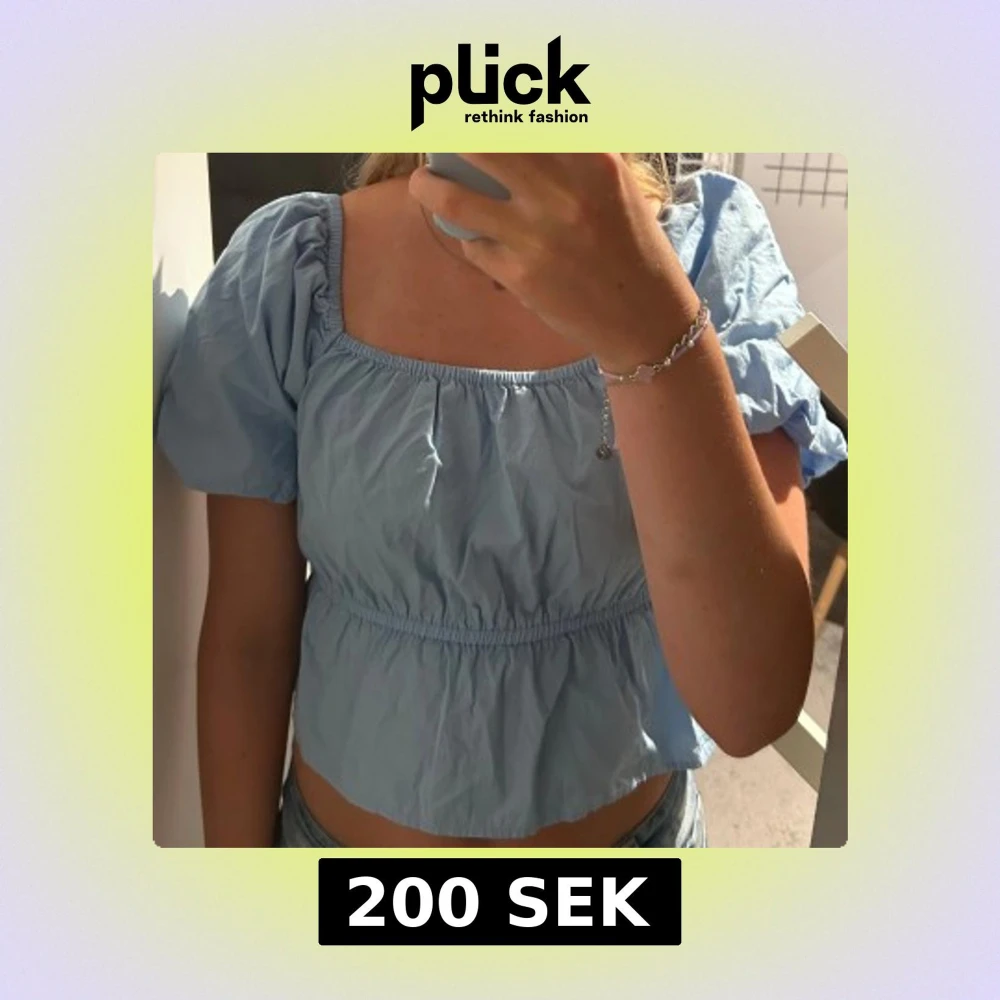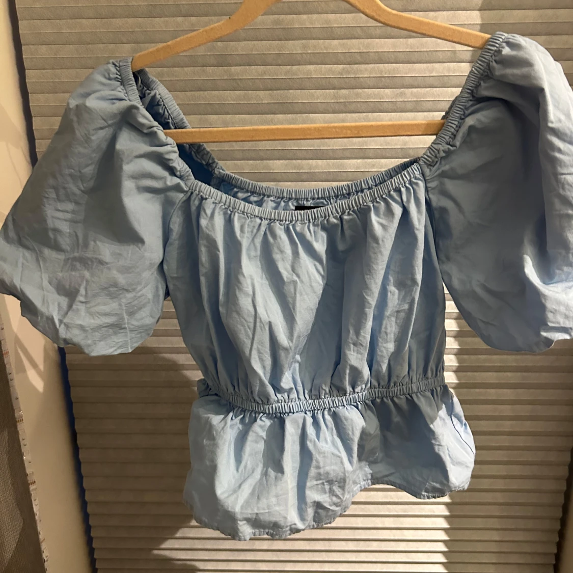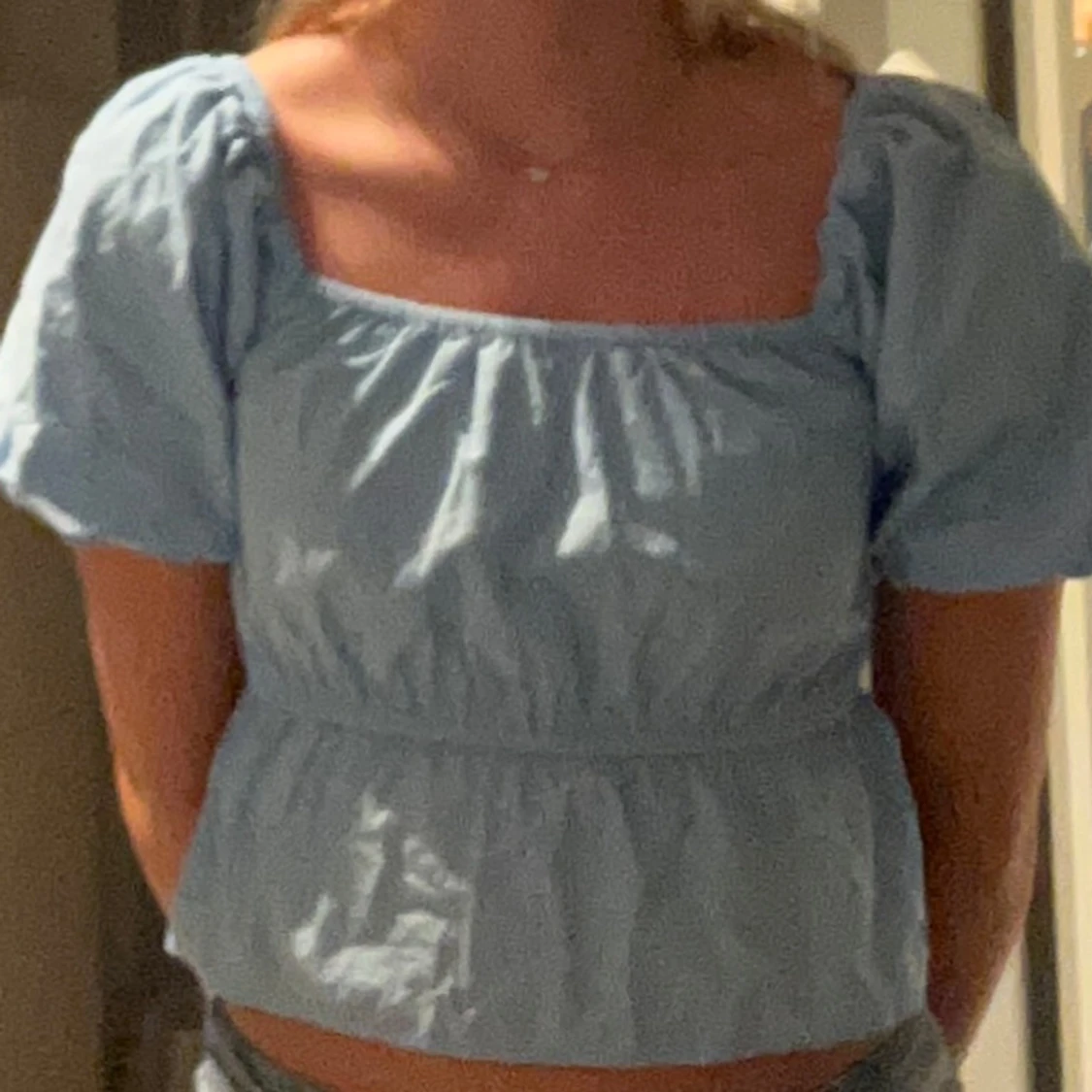 Supersöt ljusblå blus med puffiga korta ärmar. Använd en gång!💗💕