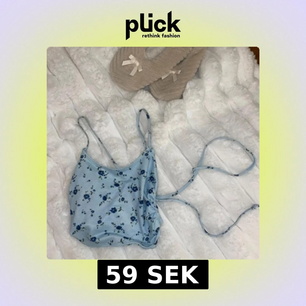 Söt blå linnetopp med blommigt mönster och smala axelband. Toppen har en knytbar detalj på sidan som ger en fin passform. Perfekt för varma sommardagar!