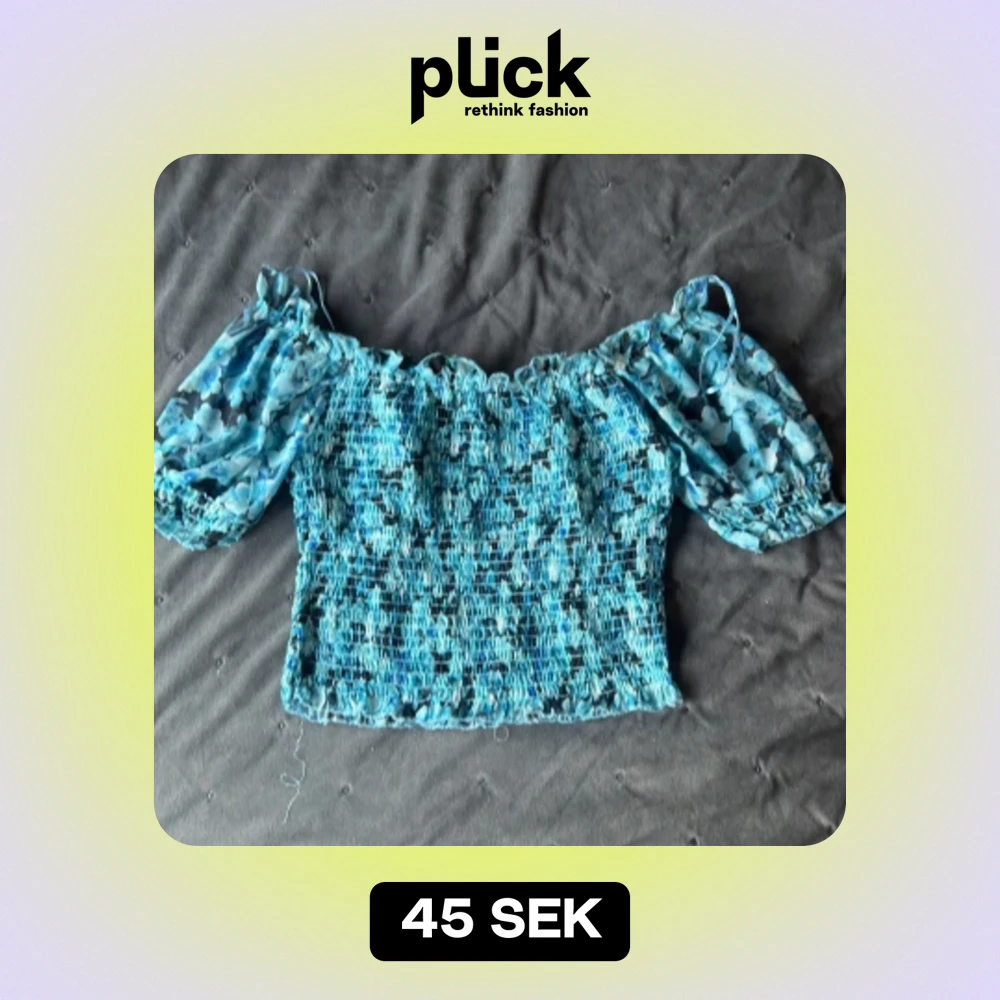 Säljer en superfin blå offshoulder topp med blommigt mönster. Toppen har korta puffärmar och är smockad för en tight passform. Perfekt för sommarens fester eller en dag på stan! Helt ny också