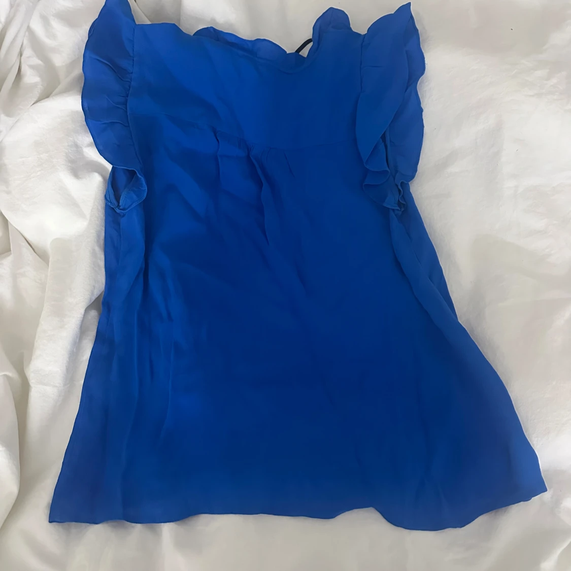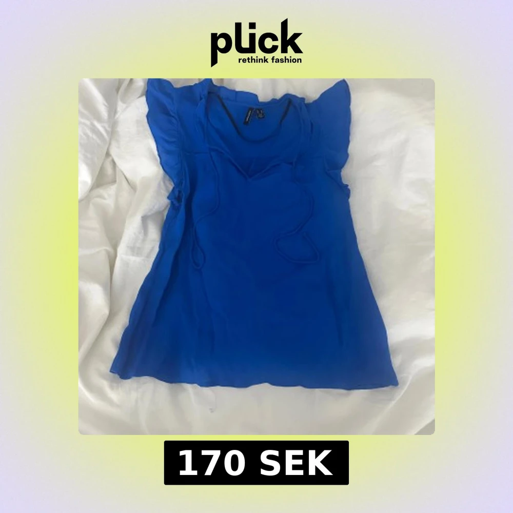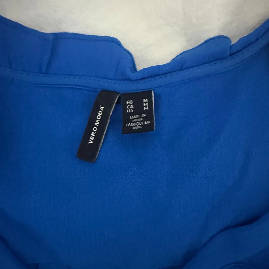 Snygg blå blus från Vero Moda med volangdetaljer vid ärmarna och en v-ringad design. Perfekt för att lägga till en färgklick i garderoben. Använd ett fåtal gånger så super fint skick.💙