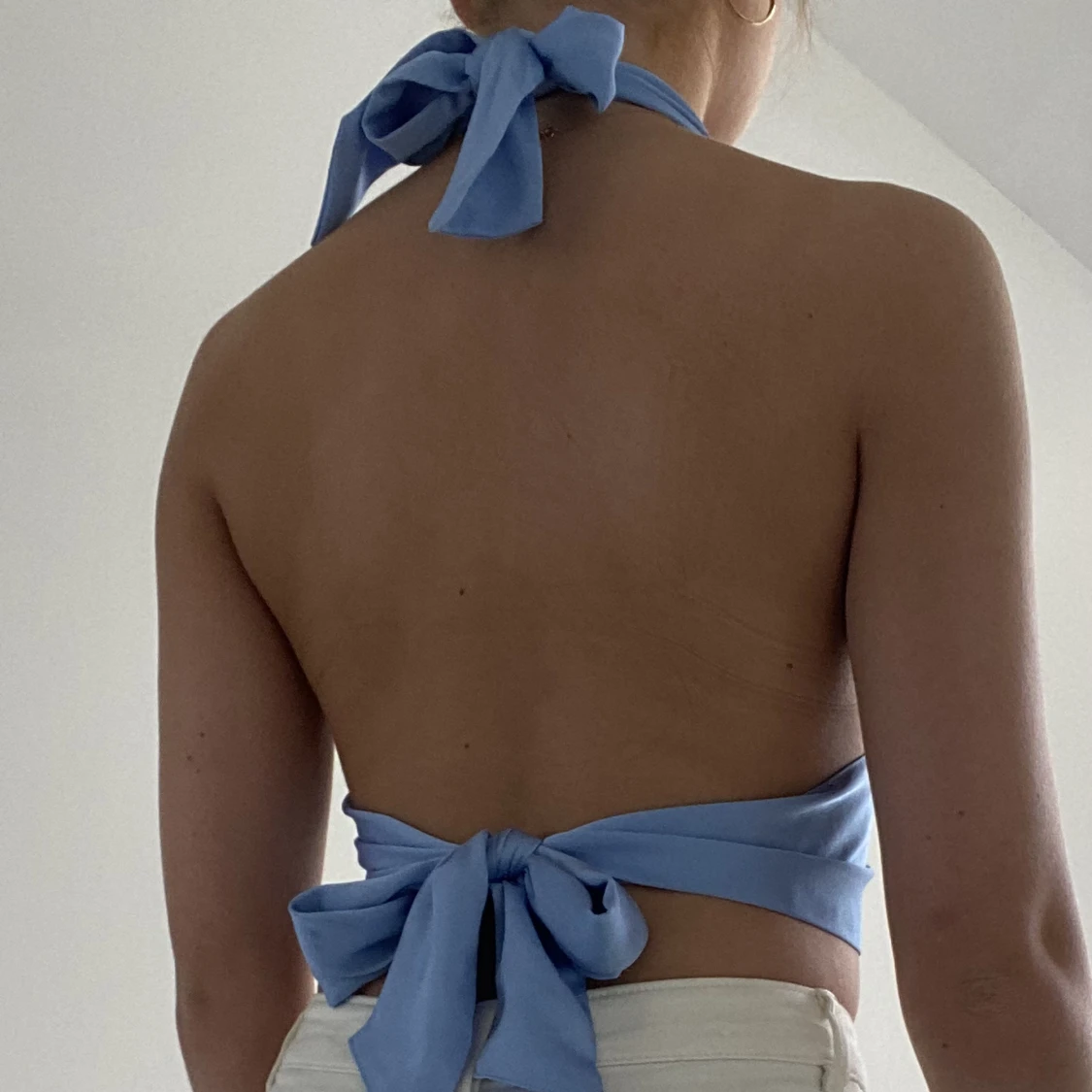 Blå halterneck topp, med knyt från Gina Tricot, använd 2 ggr, nypris 300kr, xs