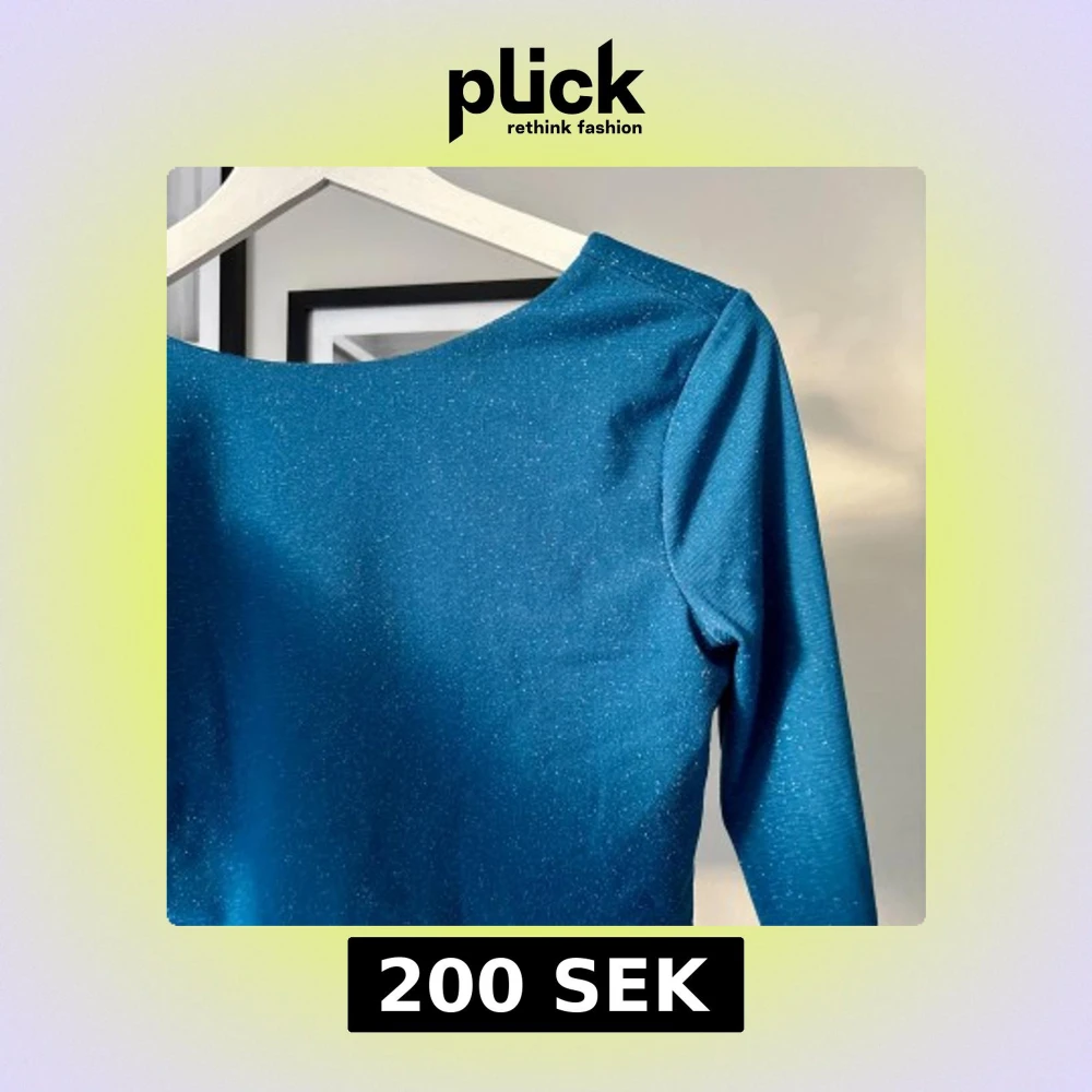 Supersnygg blå glittrig topp från NA-KD med lång ärm och öppen rygg som knyts med tunna band. Materialet är stretchigt och skimrar i ljuset, perfekt för att sticka ut. Sitter snyggt och har en modern, trendig vibe.