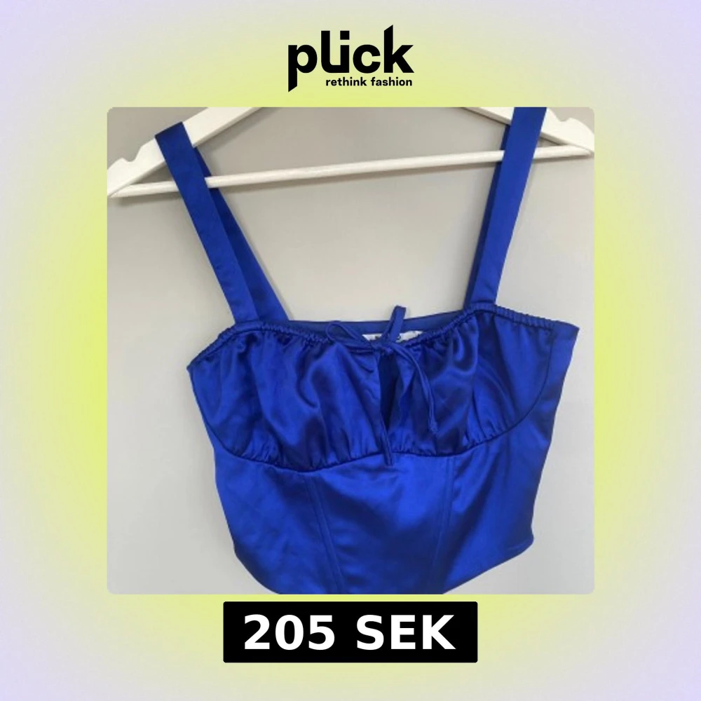 Snygg blå korsettopp från NA-KD i satin med smala axelband och knytning framtill. Perfekt för nyår🥰