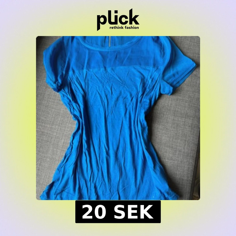 Snygg blå topp med korta ärmar och rund halsringning. Överdelen har en transparent meshdetalj som ger en cool touch. Perfekt till jeans eller kjol för en fräsch look.