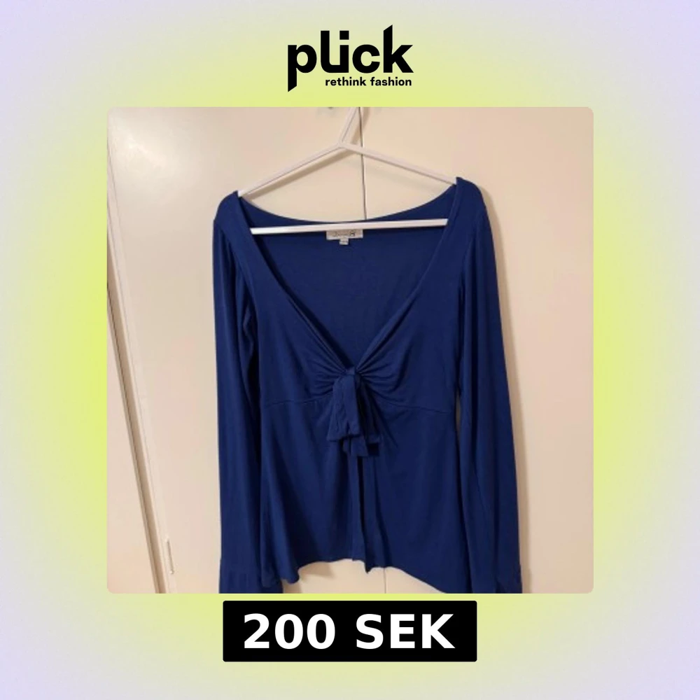 Snygg blå långärmad topp från Design By Si med knytning framtill. Toppen har en djup v-ringning och är tillverkad i ett mjukt material som ger en skön passform.