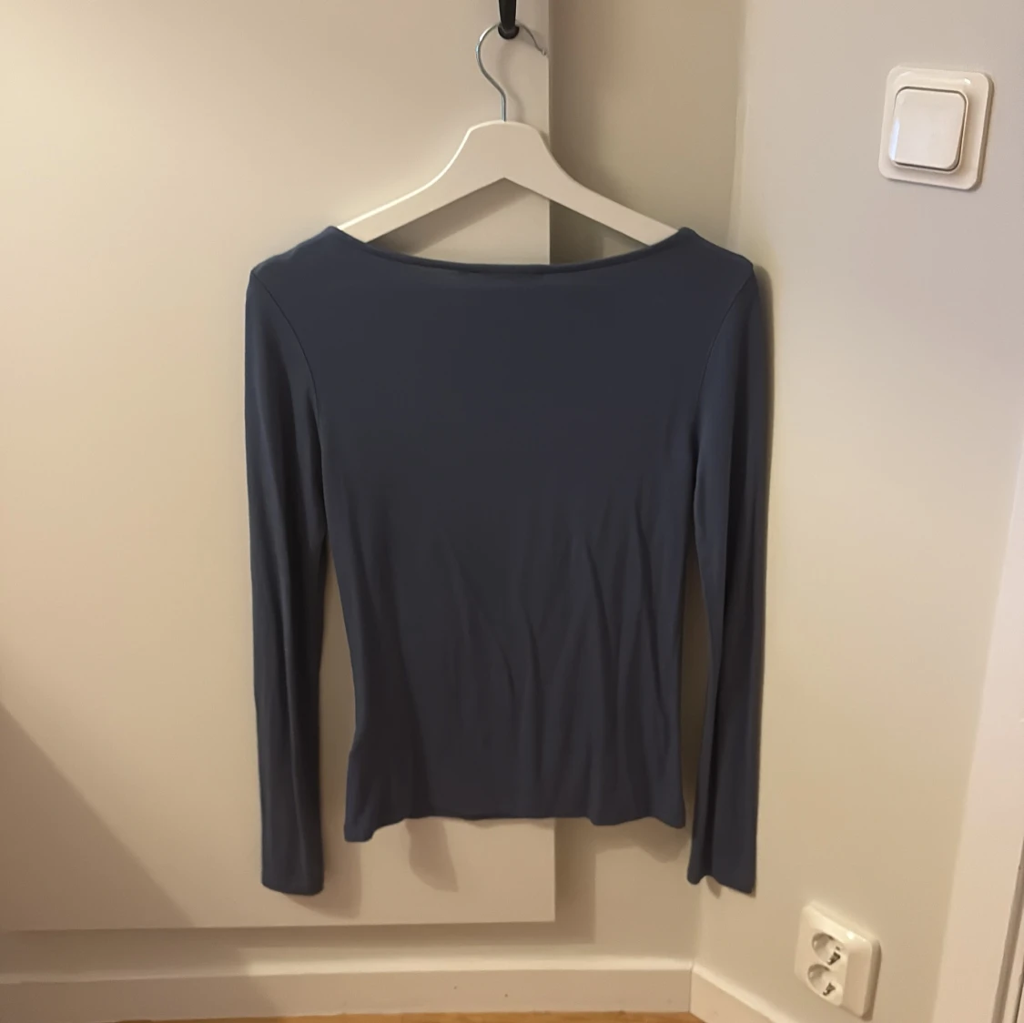 En stilren blå långärmad topp från Lager 157 med rundad halsringning. Modellen är figurnära och enkel, perfekt att matcha med jeans eller kjol. Tunt och stretchigt material som känns skönt mot huden.