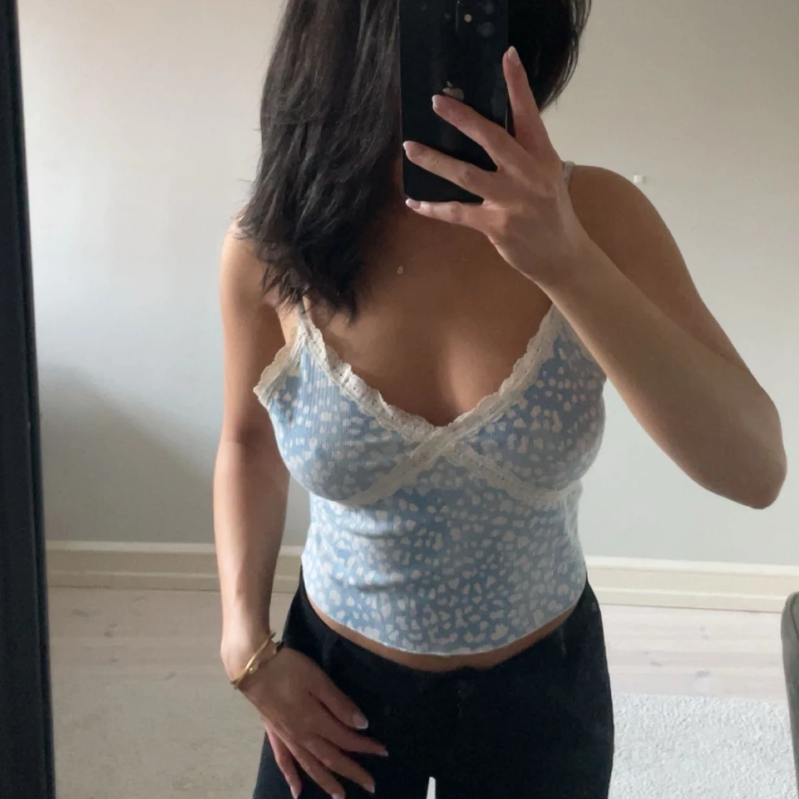 Säljer denna söta blåa linnetoppen i storlek M😋