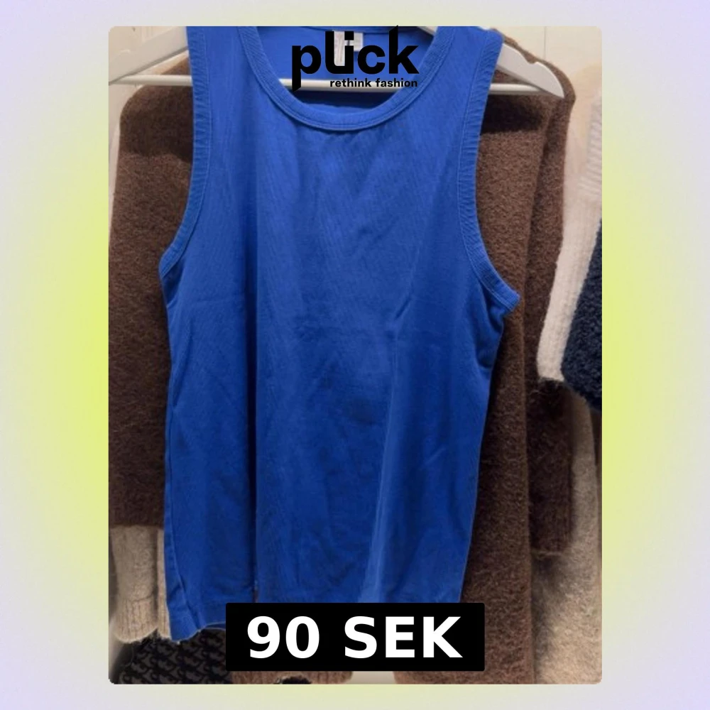 Säljer en klarblå linnetopp från & Other Stories, Stockholm Atelier. Toppen är ärmlös med rund hals och ribbade kanter. Materialet är mjuk bomull som känns skönt mot huden. Perfekt för dig som gillar enkla och stilrena plagg med färg.