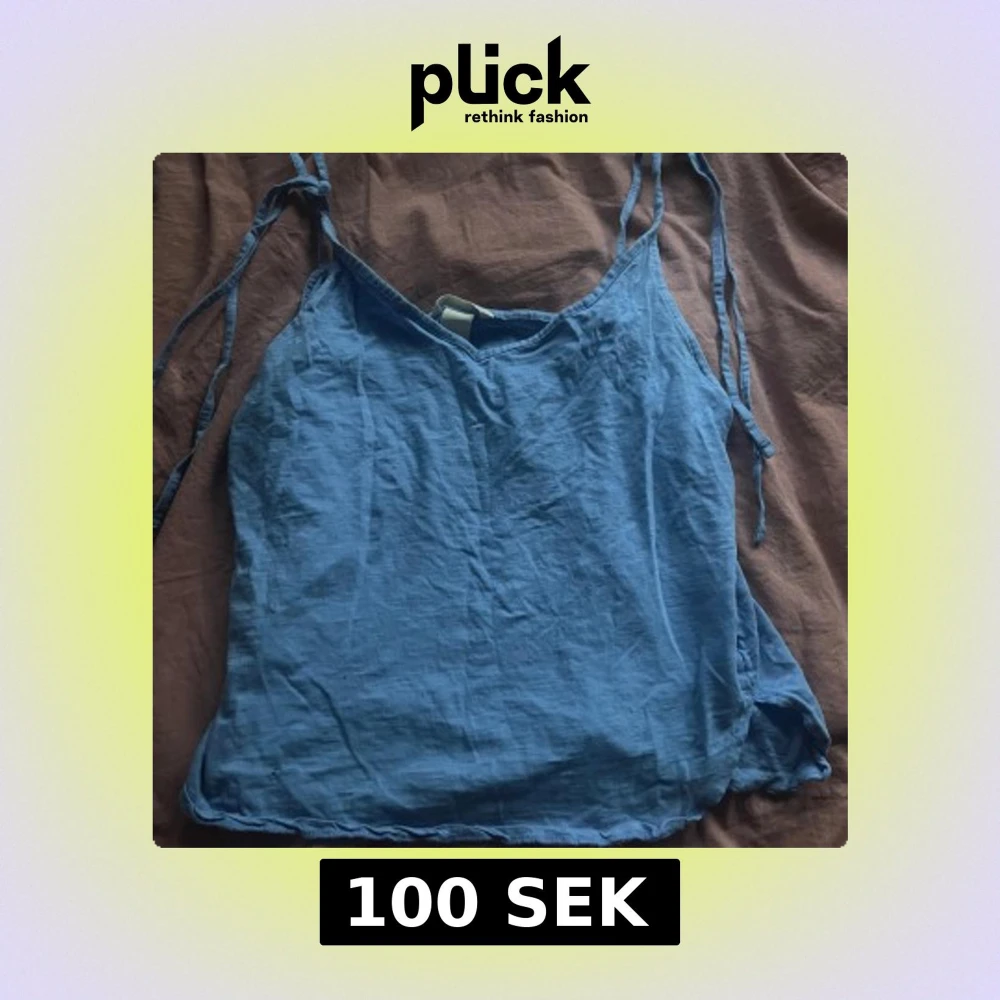Säljer en enkel blå linnetopp i storlek M med smala axelband som knyts upptill. Toppen har en avslappnad passform och är tillverkad i ett lätt material, perfekt för varma dagar. Snygg att matcha med jeans eller shorts för en chill look.
