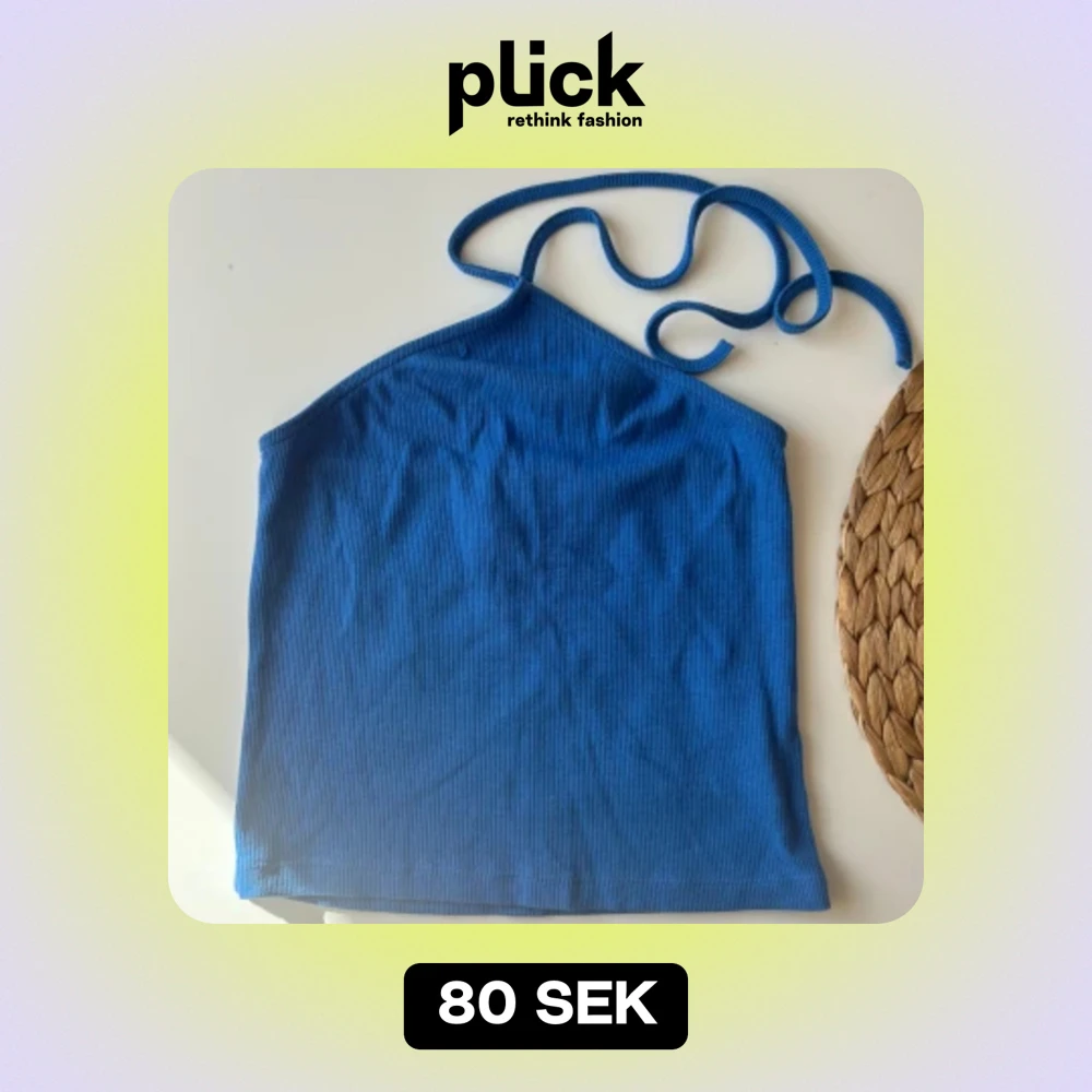 Blå topp med knytning i nacken. Sparsamt använd så väldigt fint skick!