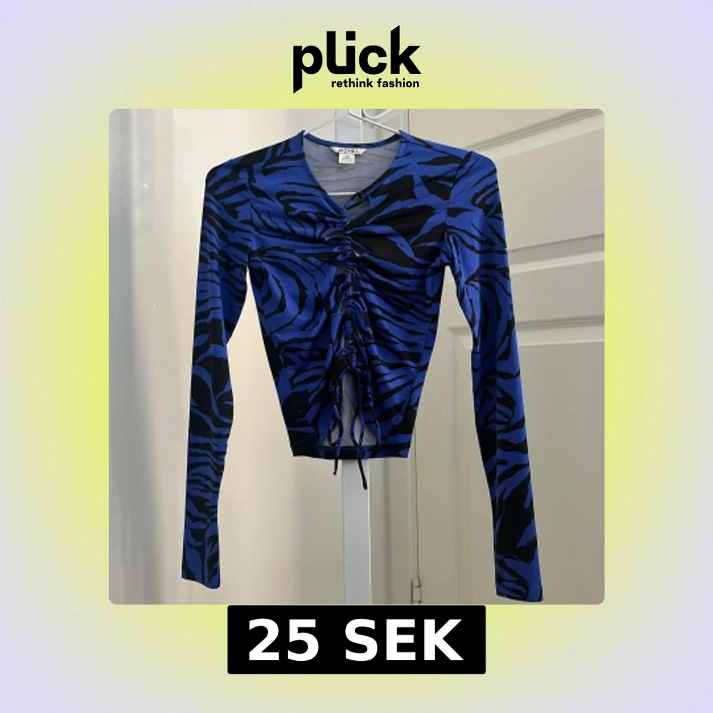 Säljer en blå och svart långärmad topp från Monki med zebramönster och snörning framtill. Modellen är tight och croppad, perfekt för att sticka ut med ett coolt mönster. Materialet är stretchigt och bekvämt.💙
