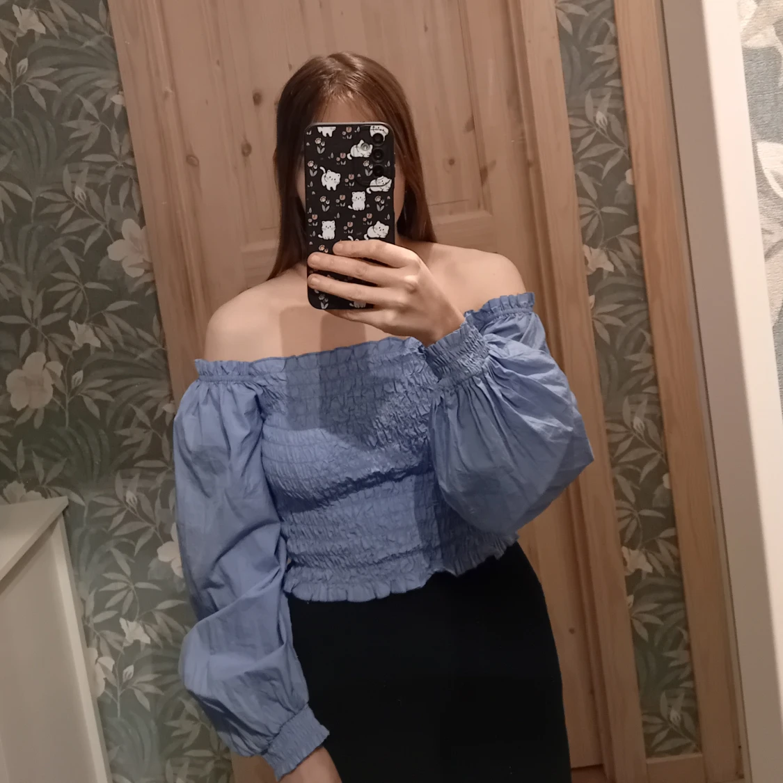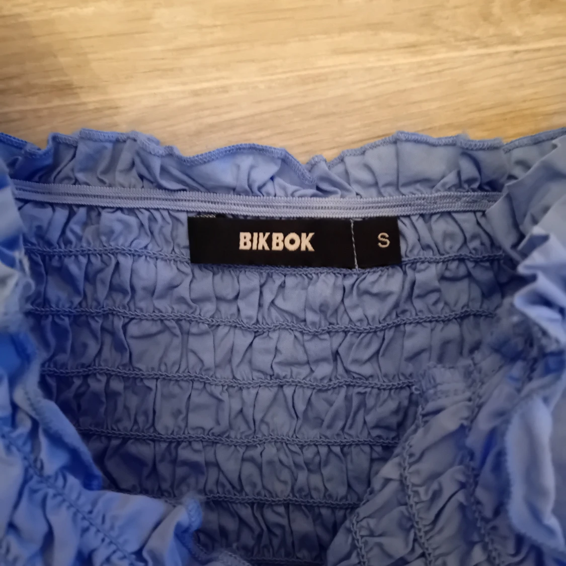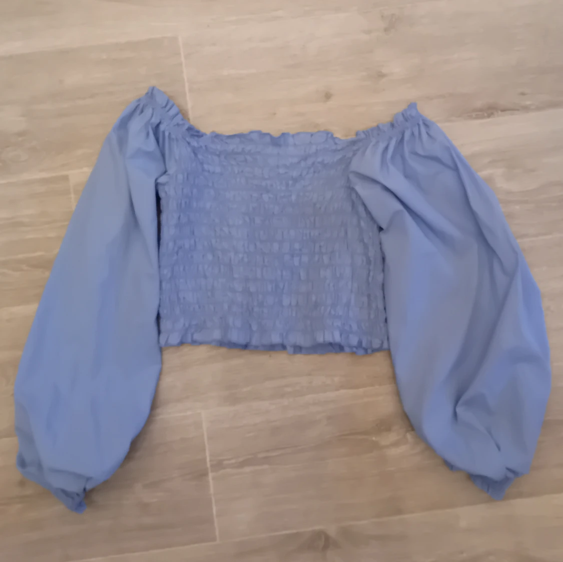 Säljer en blå offshoulder topp från Bik Bok med smockdetaljer och långa puffärmar💙. Perfekt för en stilren look. Säljer den då jag bara har använt den ett fåtal gånger