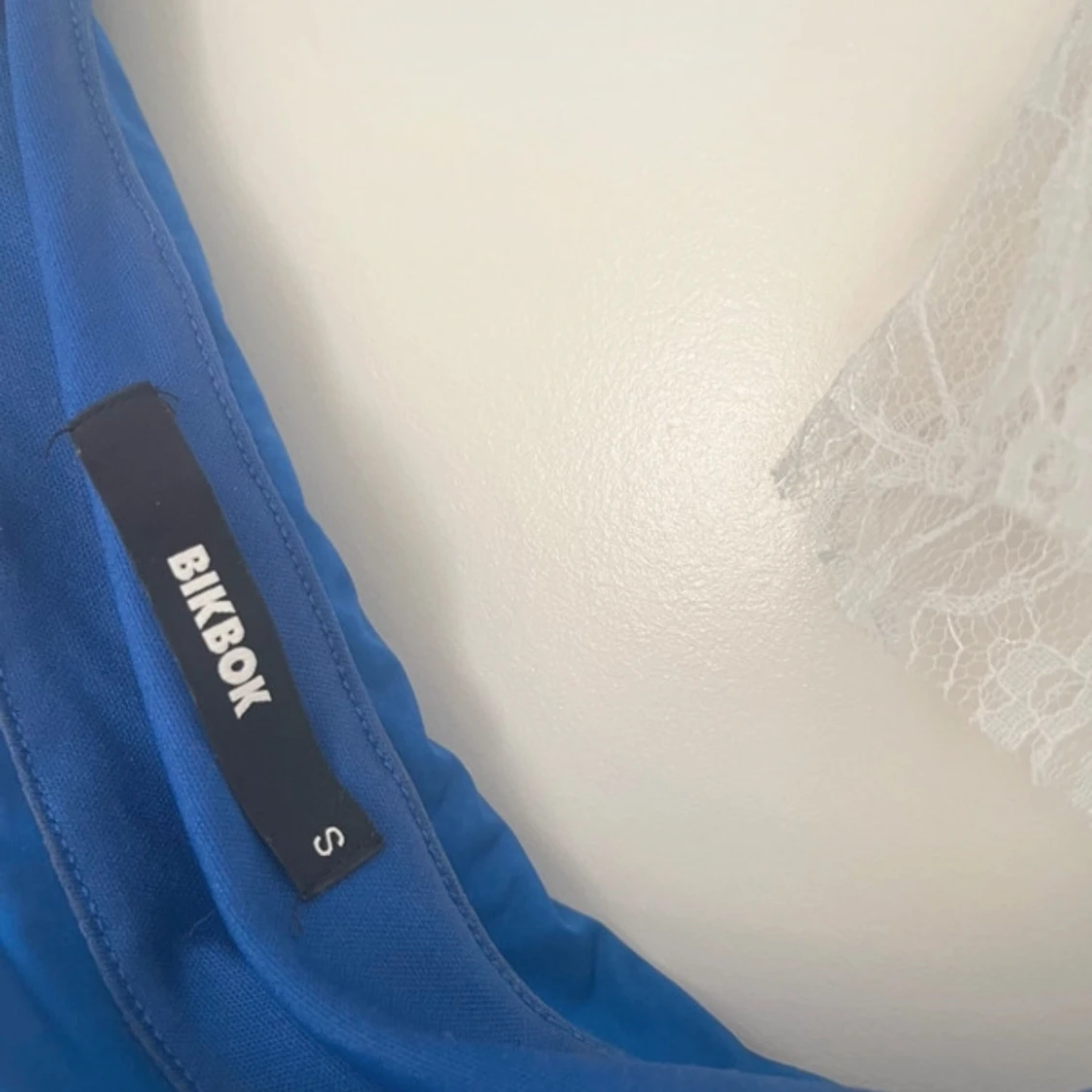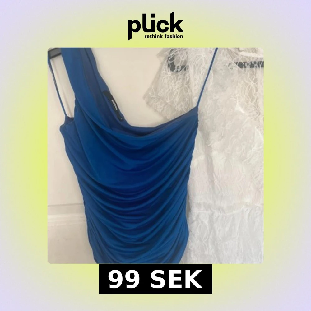 Säljer en snygg blå one shoulder topp från BikBok. Toppen har draperad design och smala axelband.
