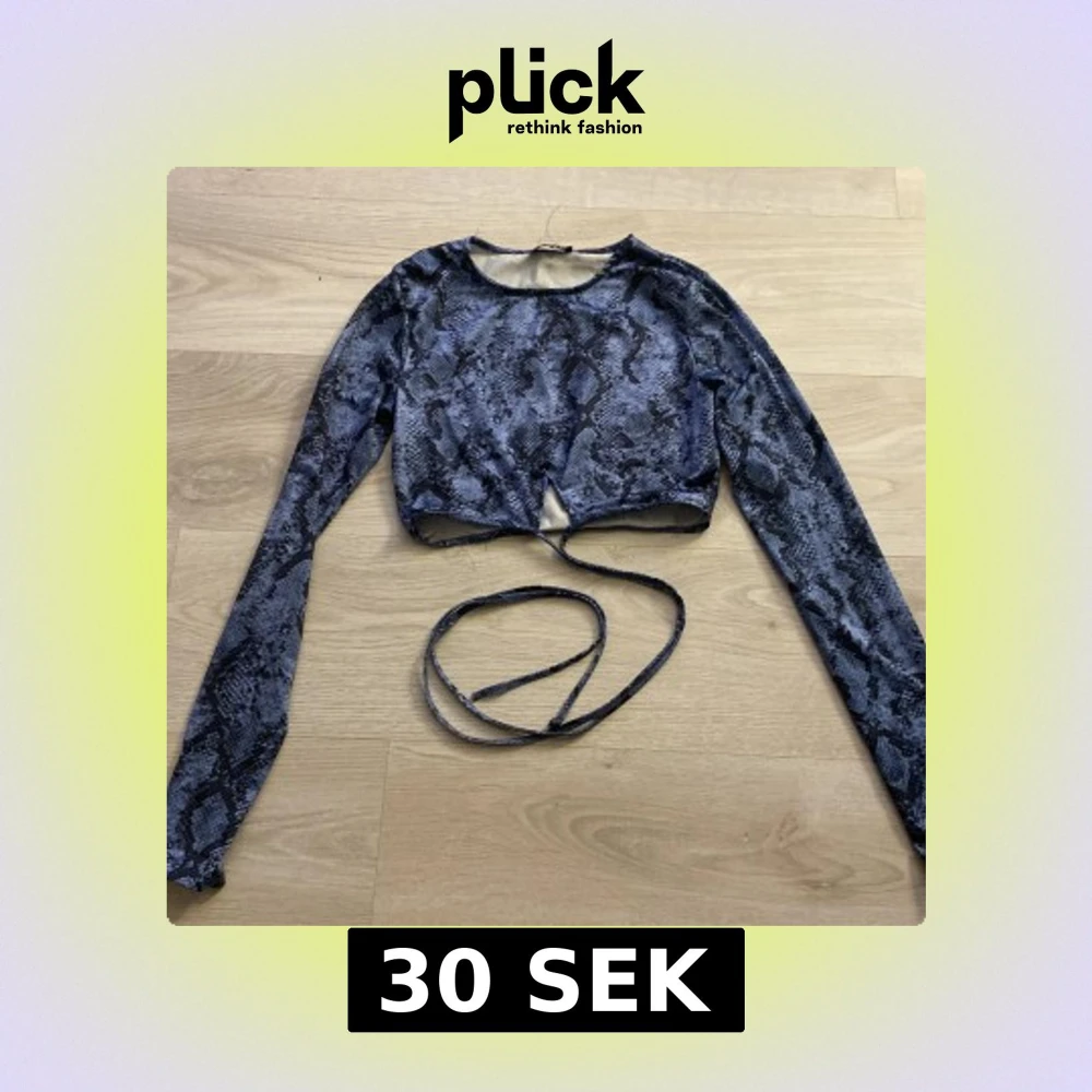 Snygg blå croppad topp med ormmönster från Tally Weijl. Toppen har långa ärmar och en knytning i midjan för en trendig look. Perfekt för att sticka ut i mängden!