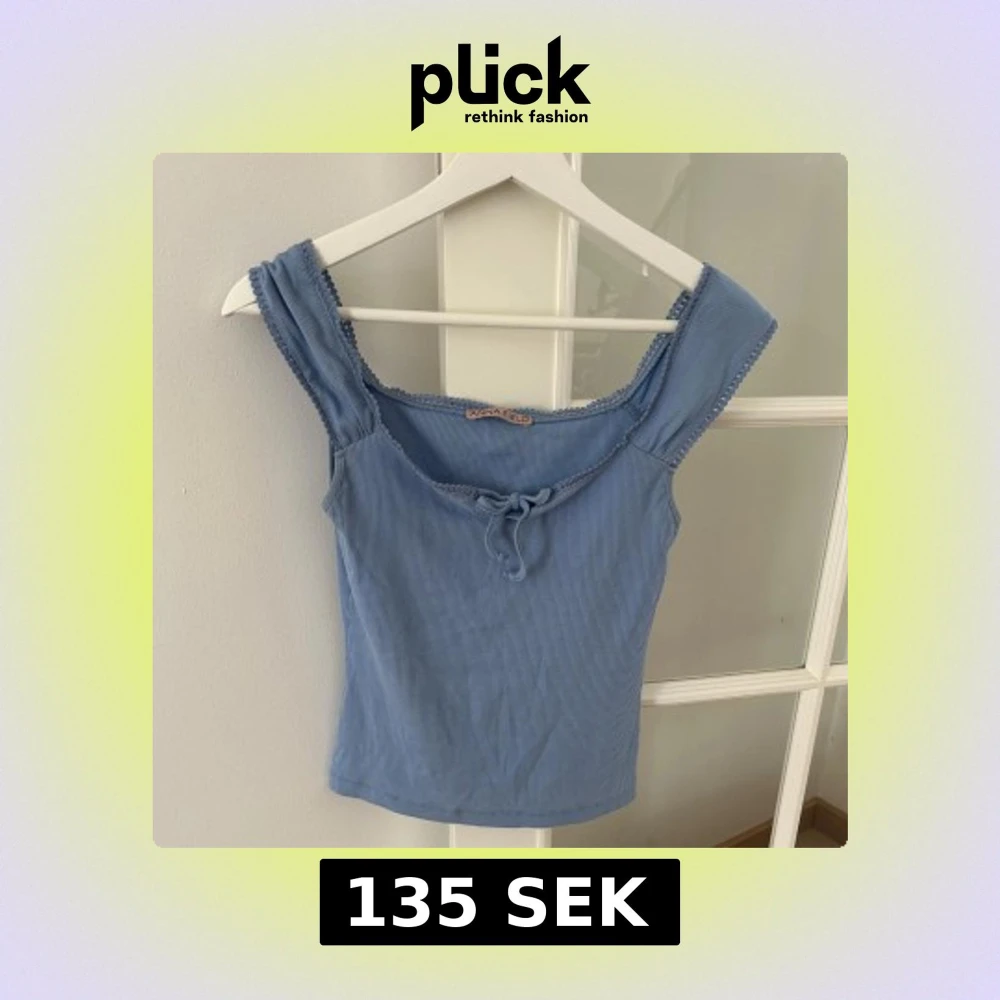 Supersöt ljusblå ribbad linnetopp från Anna Field med breda axelband och knytning framtill. Använd ett fåtal gånger.
