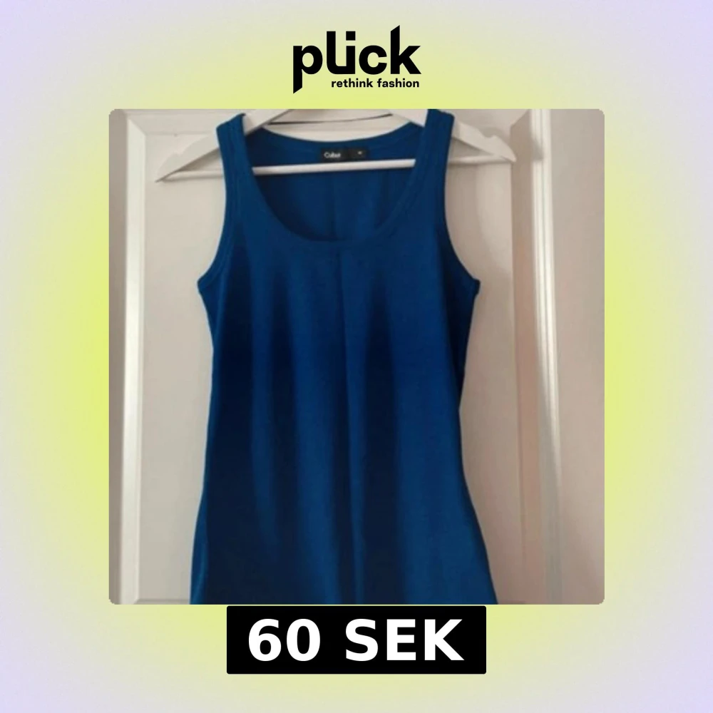 Säljer en blå ribbad linnetopp från Cubus. Toppen har en klassisk rund halsringning och ärmlös design, perfekt för varma dagar eller som lager under andra plagg.
