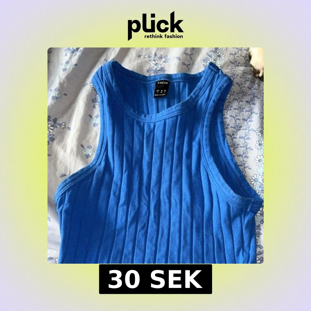 Snygg blå ribbad linnetopp från Shein i storlek S.
