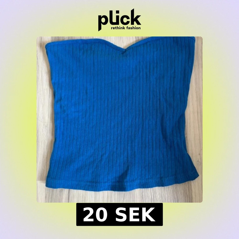 Säljer en blå ribbad tubtopp från shein Toppen är ärmlös och har en snygg hjärtformad överkant. Perfekt att styla till jeans eller kjol för en trendig look.