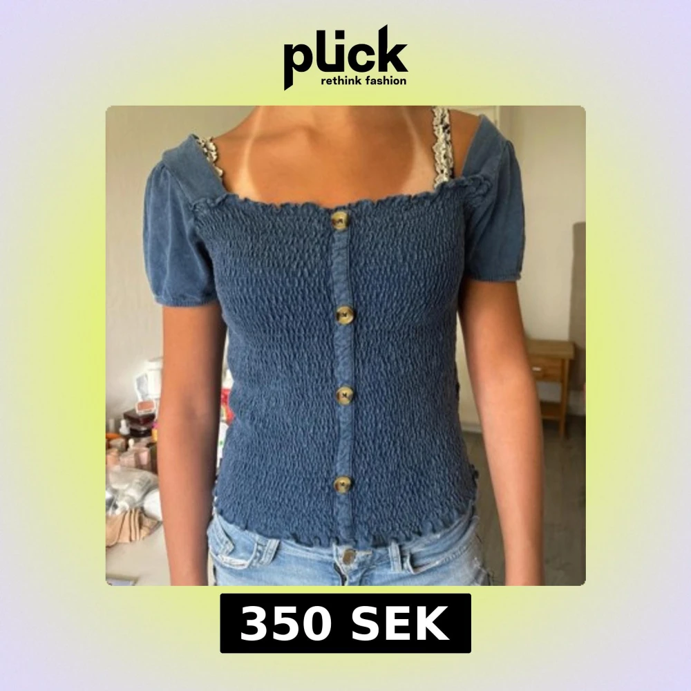 Supersöt blå smockad blus från Zara med kort puffärm och snygga träknappar framtill. Storlek 13-14 år men den är stor så storlek XS-S