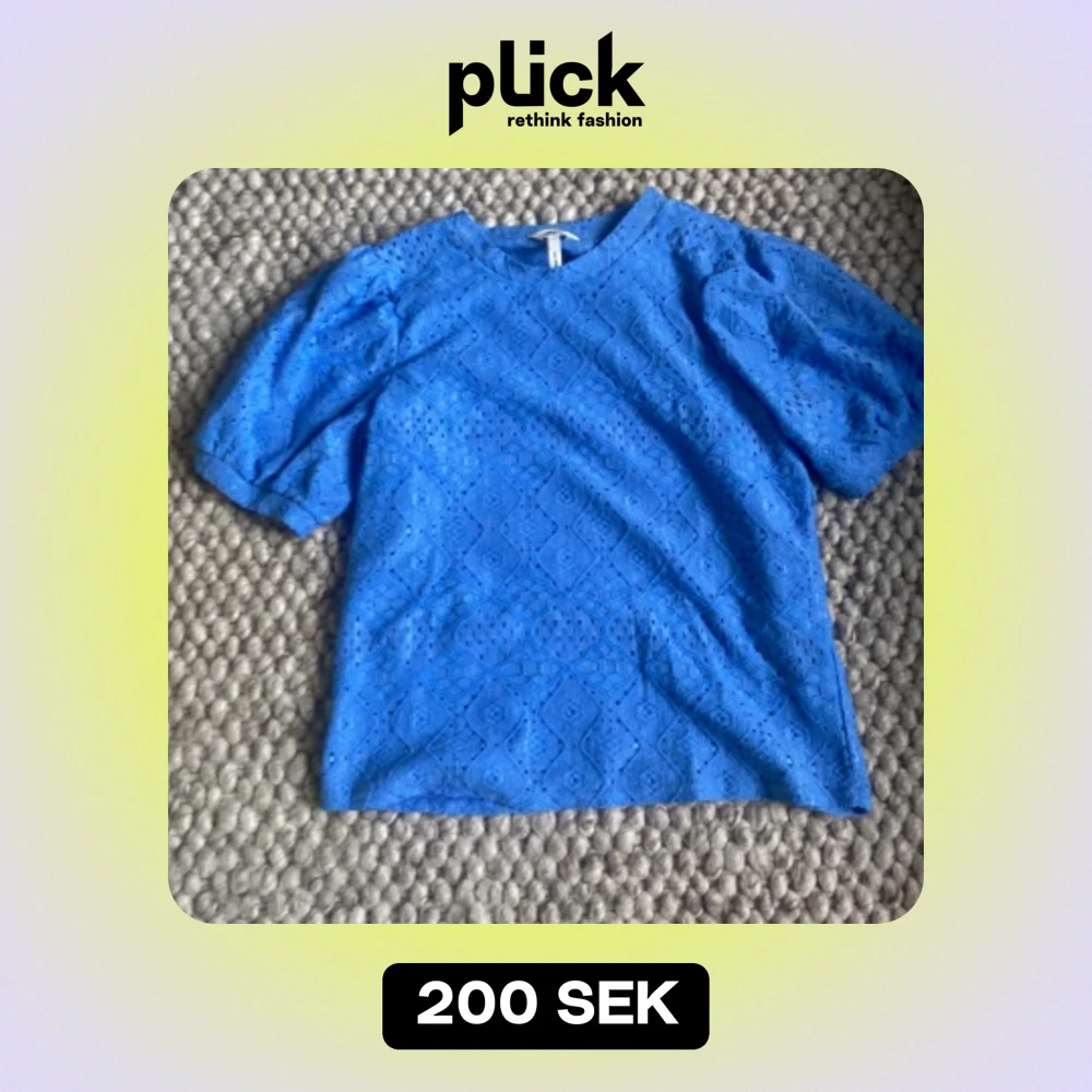 Säljer en superfin blå spetsblus från Object i storlek S. Den har korta puffärmar och ett vackert spetsmönster. använd få antal gånger.