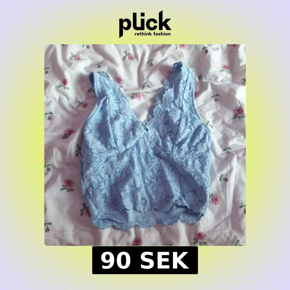 Säljer ett vackert blått spetslinne med blommigt mönster. Linnet har en v-ringad design och är perfekt för sommarens varma dagar. Detaljerna i spetsen ger en romantisk känsla. Passar bra till både jeans och kjol.