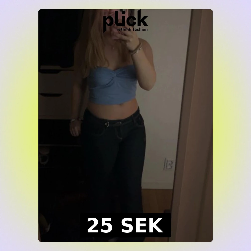 Säljer en ljusblå croppad bandeau topp med twistad detalj framtill. Toppen är ärmlös och har en enkel, stilren look som passar perfekt till jeans eller kjol. Materialet känns mjukt och stretchigt, vilket gör den bekväm att bära hela dagen.