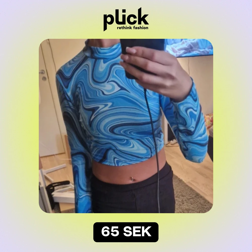 Cool klarblå topp med lite högre krage. Glansigt nästan baddräkts material, väldigt skön. Aldrig använd💙