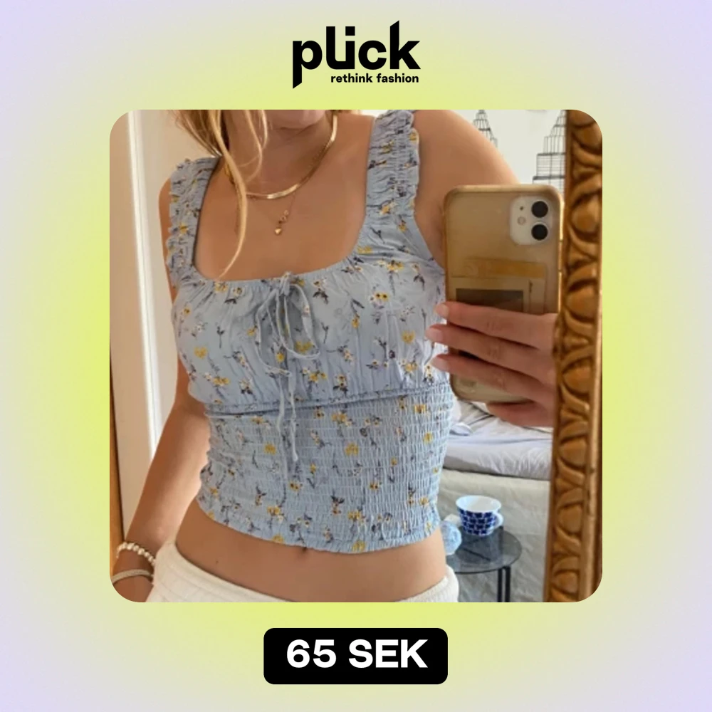 Jättefin blommig blå topp med resår i midjan, i lappen står det m men den passar mig som brukar ha xs.