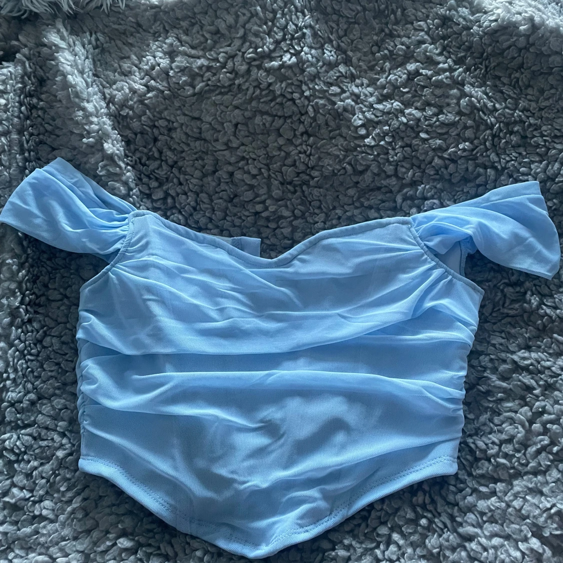 En blå topp som var tänkte till en fest men levererades för sent, endast provad. Jätte gullig🥰
