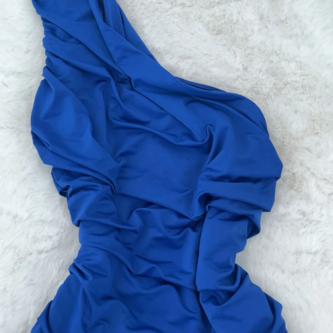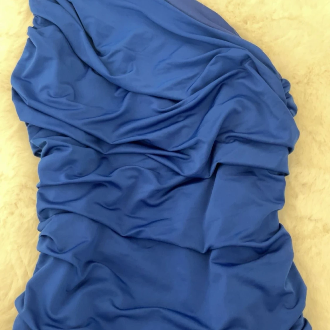 Säljer en blå one shoulder topp från BikBok i storlek S som även passar Xs. Har nästan aldrig använt den, fint skick🥰