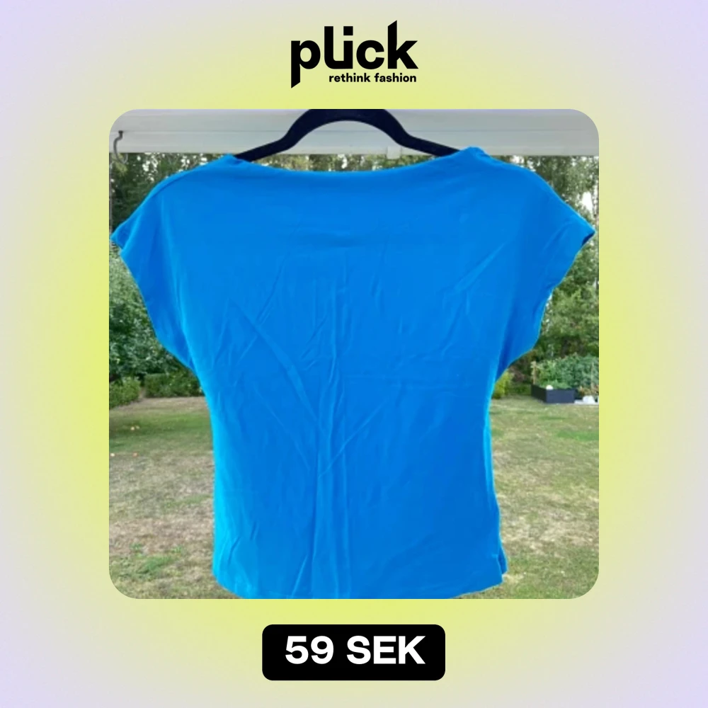 En blå t-shirt med låg rygg och tunt skönt material. Storleken är M och passar fint till mig som normalt har storlek S i toppar. Har aldrig blivit använd så det är därför jag nu väljer att sälja den 💙😚 Längd: 47 cm Axel: 50 cm Byst: 72 cm