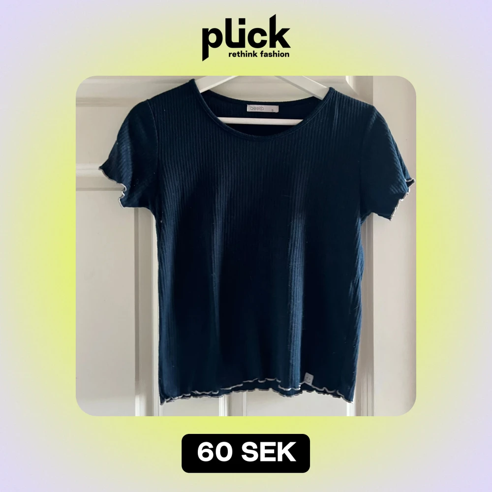 Säljer en mörkblå ribbad topp i bra skick i storlek S