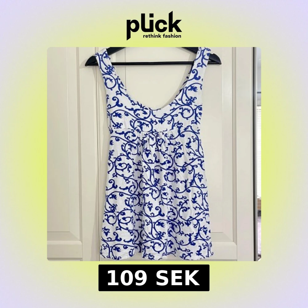 Superfin topp ifrån onto moda. Toppen är ärmlös med lite tjockare axelband och knytning som går att ha båda fram eller baktill. Linnet har jättesnyggt klarblått mönster och en lösare passform💘
