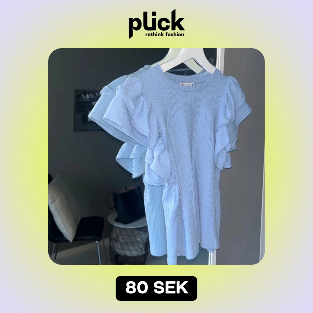 Säljer denna blå volangtopp från zara. Den är i storlek S och är i bra skick.