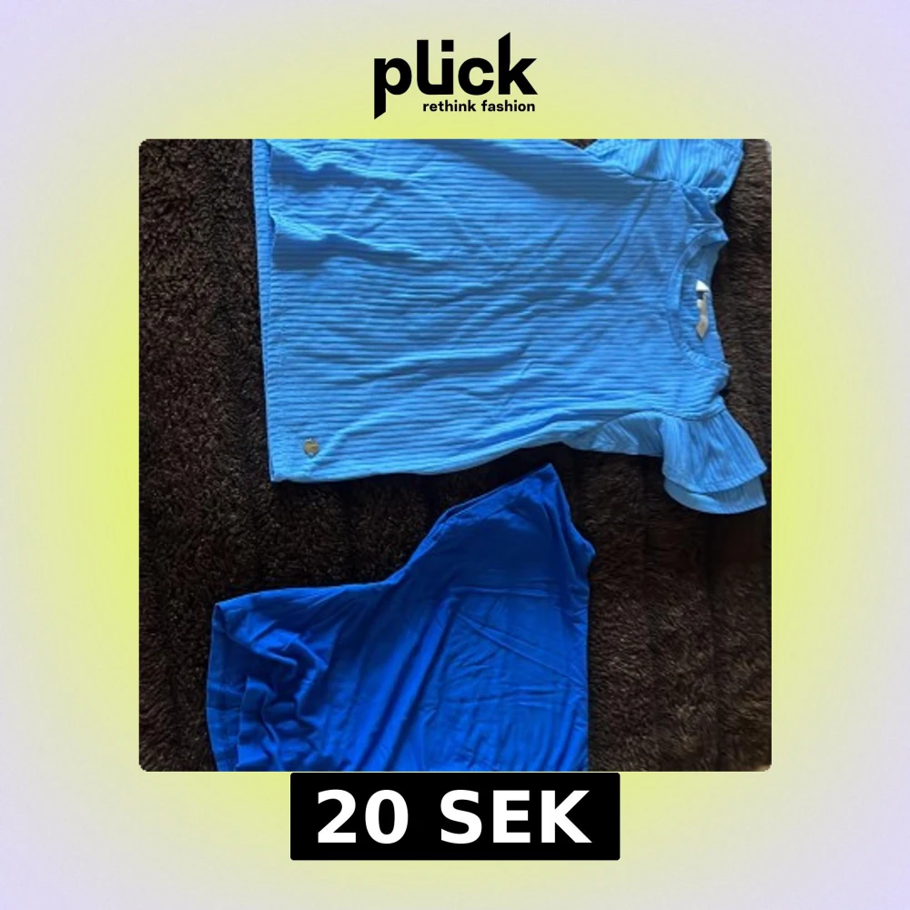 Säljer en ljusblå ribbad topp från Pernilla Wahlgren med volangdetalj på ena ärmen. Toppen har rund halsringning och är tillverkad i ett mjukt, stretchigt material. Perfekt för dig som gillar en feminin och trendig look.
