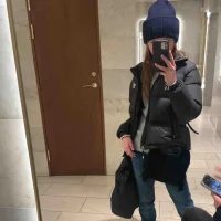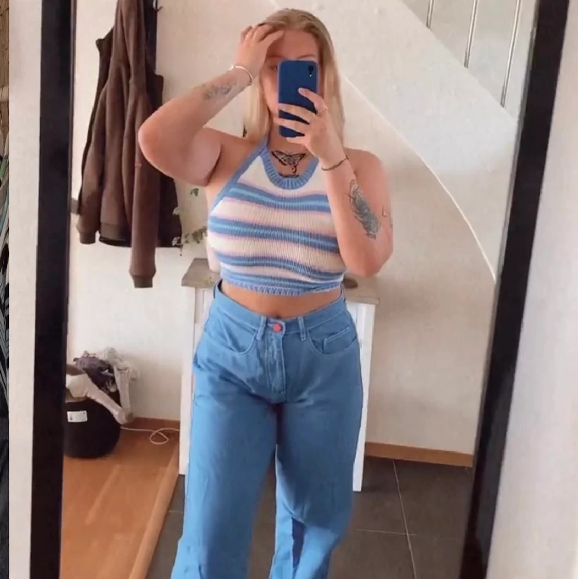 storlek L men passar både M och S också. Se bilder för hur den sitter på mig! Har även en grön M.