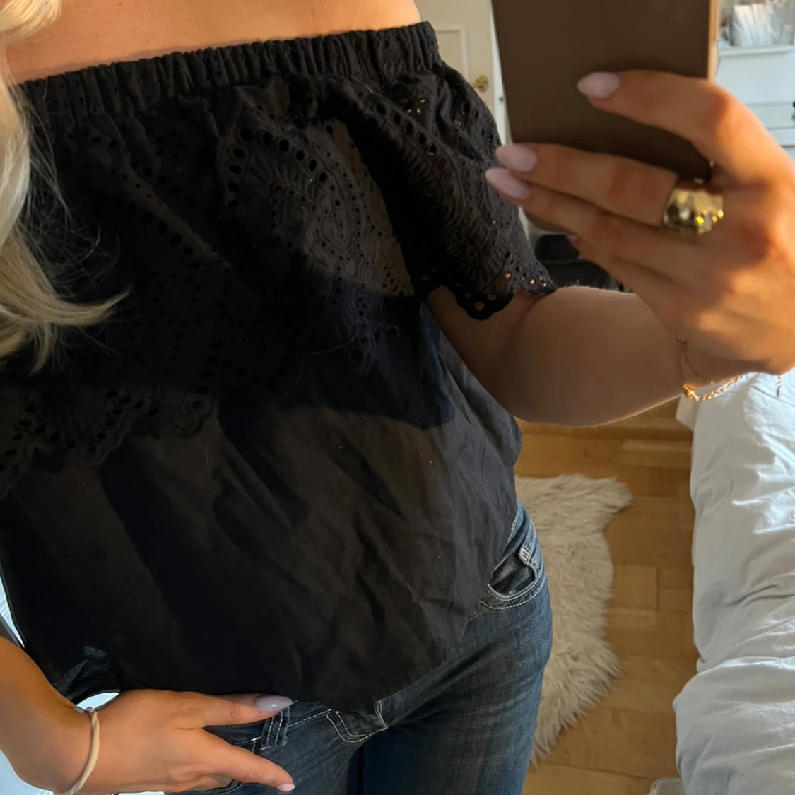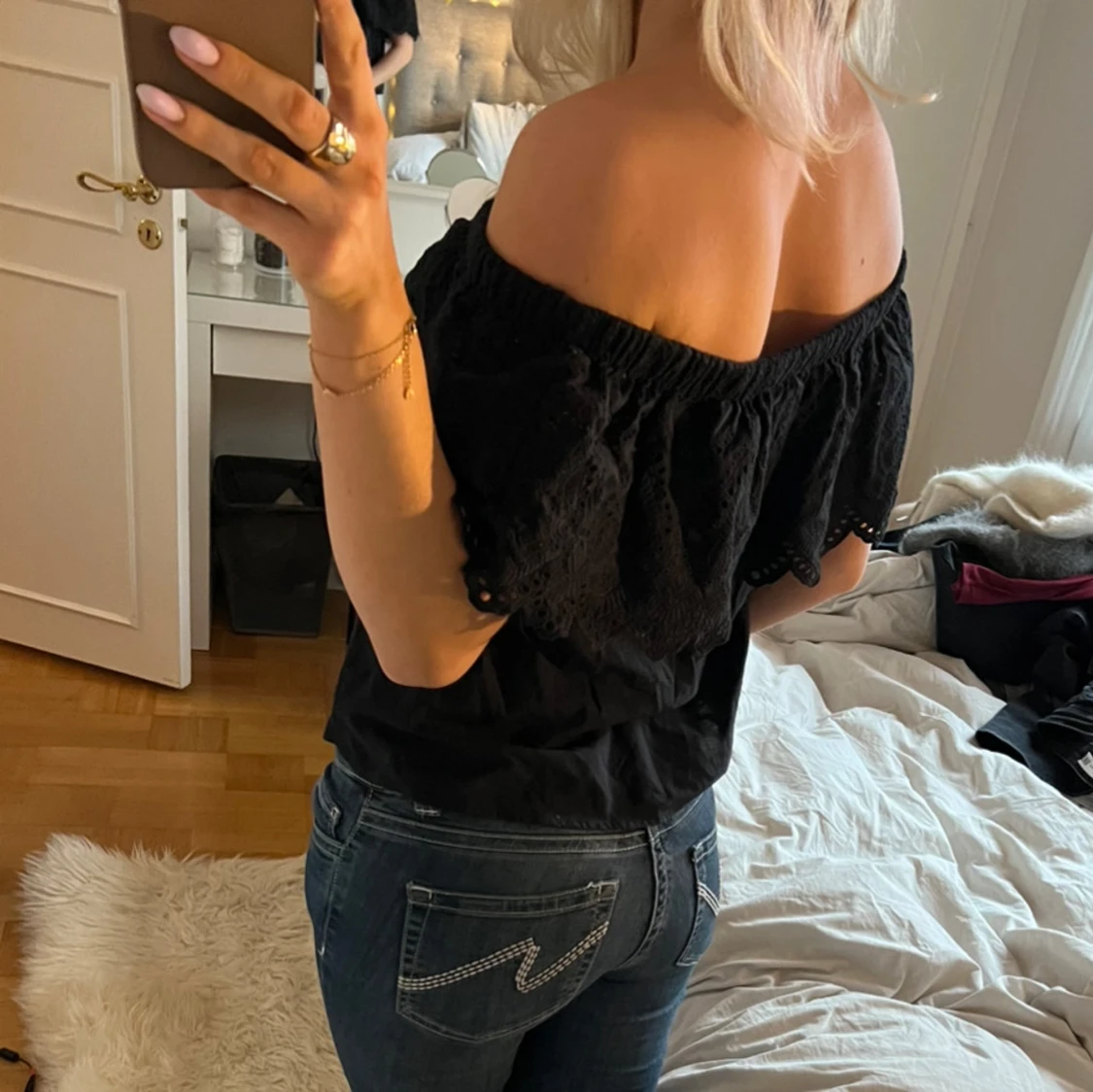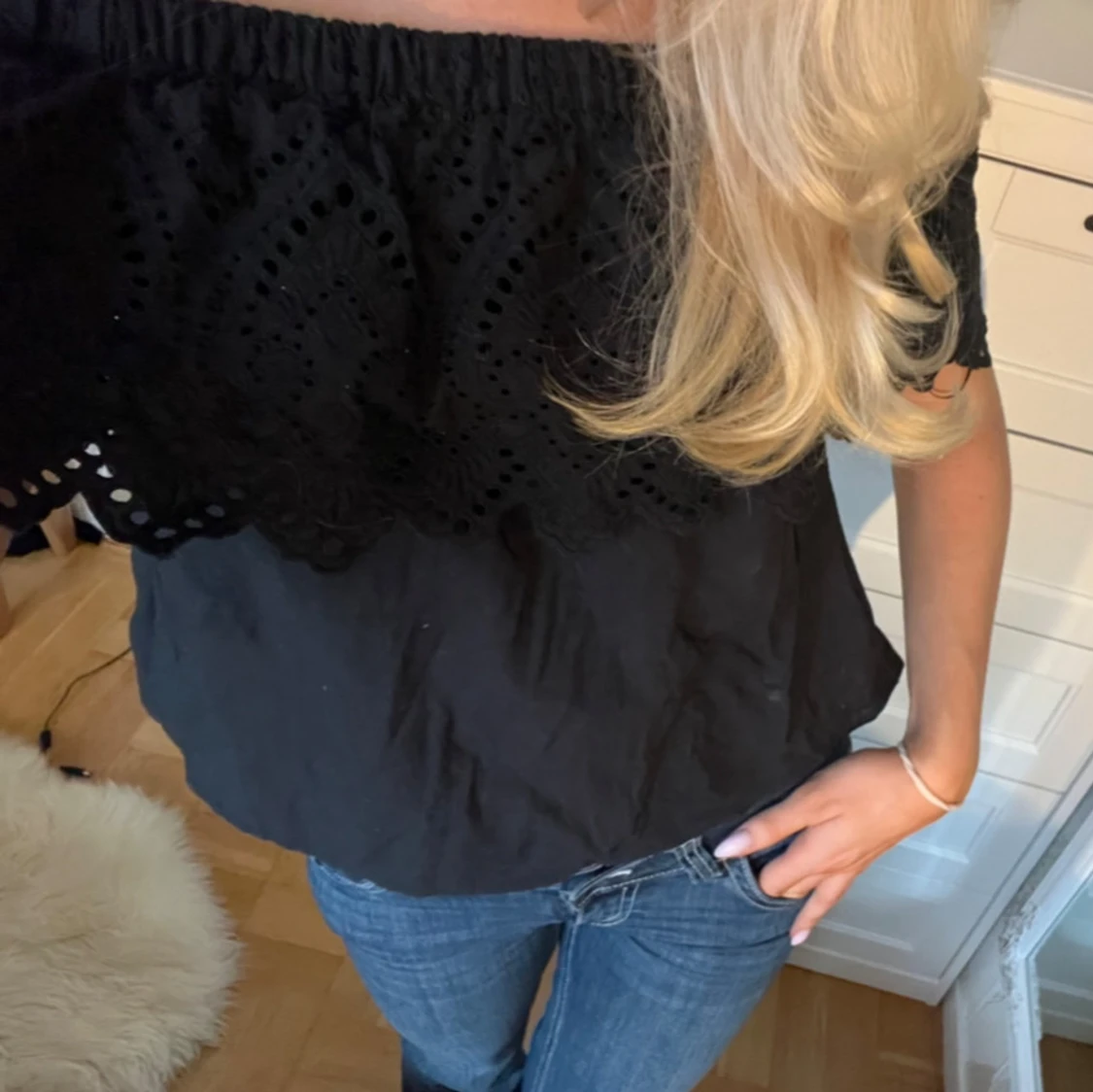 ASSNYGG svart offshoulder topp med spetsdetalj. Toppen har en luftig passform och passar perfekt till festliga tillfällen😍🥰