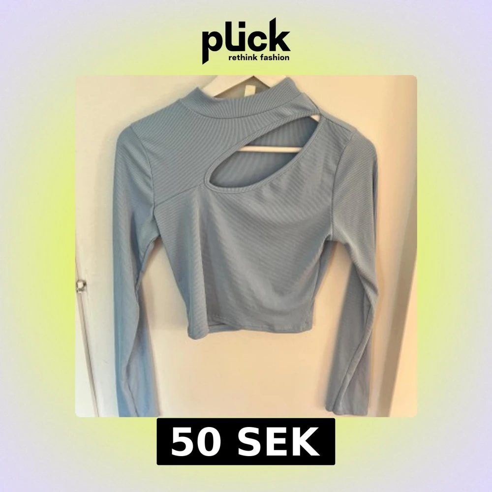 Trendig ljusblå långärmad topp med ribbad struktur och cool cut out-detalj vid axeln. Croppad modell med hög hals som ger en modern vibe. Perfekt för dig som vill sticka ut lite extra.