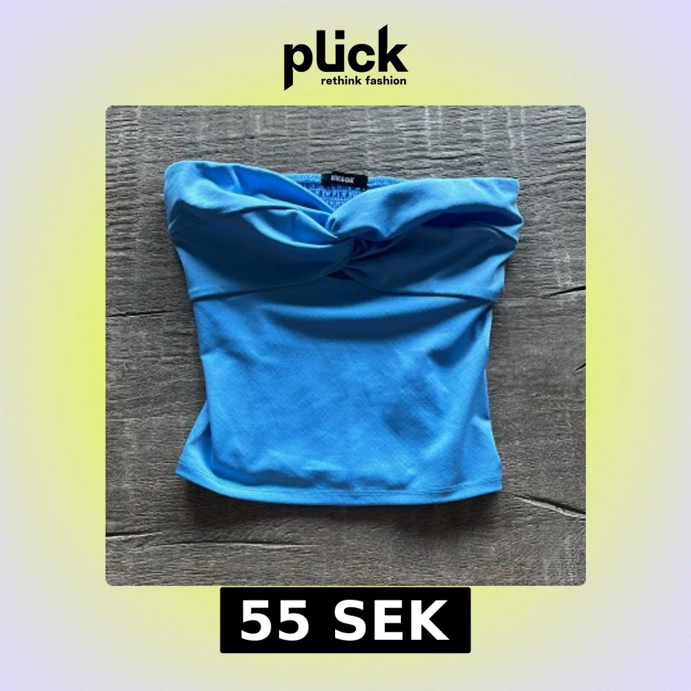 Säljer en blå tubtopp från BikBok i storlek XS. Toppen har en snygg twistdetalj framtill och är axelbandslös. Perfekt för sommaren, säljer då jag inte använder den🩵
